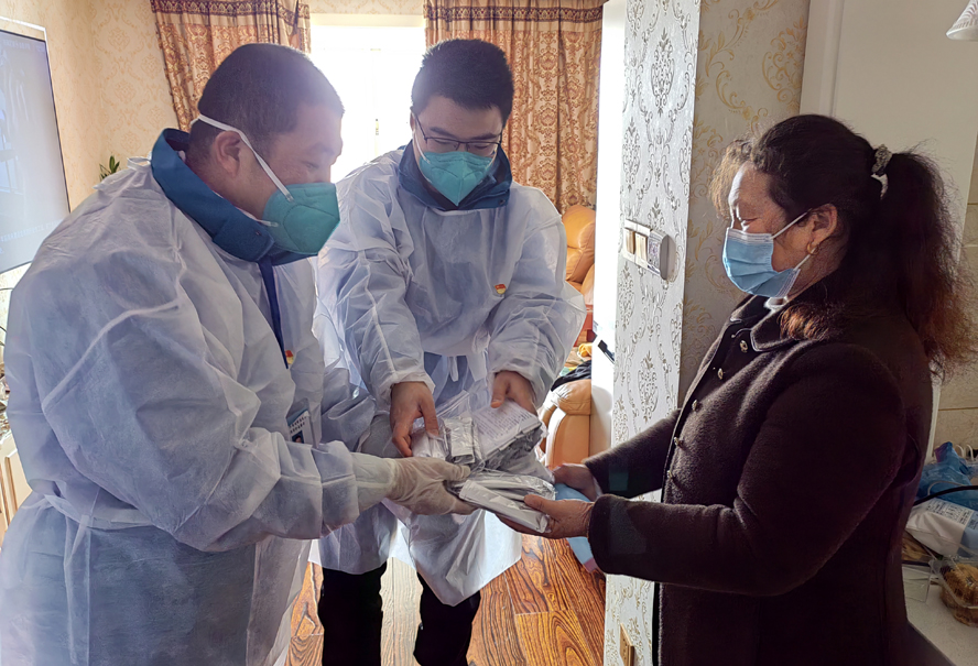 “疫情不除,我們不退。連云港加油!同科加油”一句句鏗鏘有力的誓言、一張張堅(jiān)毅的面容,傳遞著初心使命。他們是父母的孩子、妻子的丈夫和孩子的父親,更是有責(zé)任有擔(dān)當(dāng)?shù)墓伯a(chǎn)黨員,哪里有需要,哪里就有他們。黨員志愿者肖廣文,有了個(gè)新名字—“大白”,不僅與醫(yī)護(hù)工作者并肩作戰(zhàn),還與社區(qū)干部、網(wǎng)格員、民警組成社區(qū)防控小分隊(duì),從不同角度幫助社區(qū)居民,上門為留守老人送愛心午餐、幫助居民進(jìn)行健康碼登記、勸導(dǎo)居民不聚集正確佩戴口罩…….變身為社區(qū)防控的“守門員”、物資派發(fā)的“快遞員”、防疫的“講解員”。