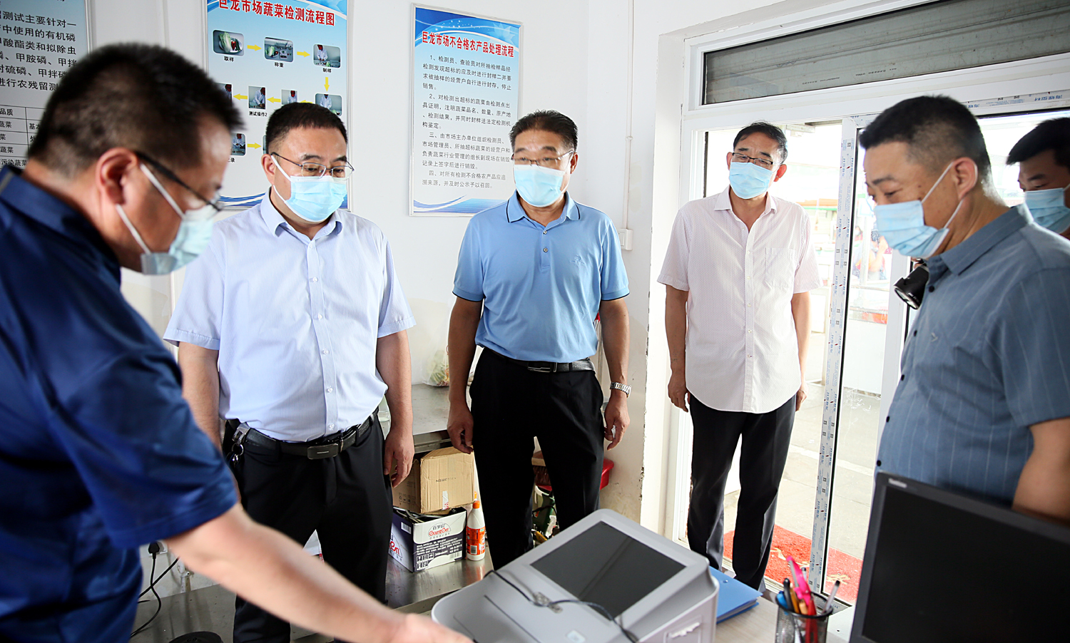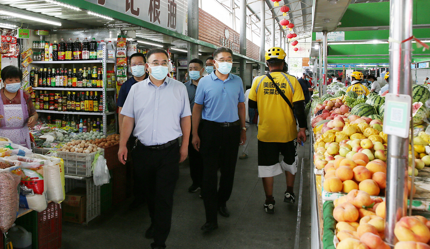 8月5日,集團(tuán)公司黨委書記、董事長、疫情防控領(lǐng)導(dǎo)小組組長楊龍深入巨龍農(nóng)貿(mào)市場督導(dǎo)疫情防控工作。他強(qiáng)調(diào),要深入貫徹中央、省市委疫情防控指示精神,保持疫情防控高壓態(tài)勢,抓實抓細(xì)抓嚴(yán)各項措施,守護(hù)好市民的“菜藍(lán)子”“米袋子”。集團(tuán)公司工會主席、疫情防控領(lǐng)導(dǎo)小組辦公室主任劉承志,金航資產(chǎn)經(jīng)營公司相關(guān)負(fù)責(zé)人陪同督導(dǎo)。 楊龍一行按防疫要求完成體溫測量、蘇康碼掃碼后,進(jìn)入市場區(qū)域,認(rèn)真察看市場內(nèi)口罩佩戴、掃碼查驗、體溫檢測等基礎(chǔ)防疫措施,仔細(xì)詢問人員管控、防疫消殺等制度落實情況。查看了解糧油肉蛋奶及水果、蔬菜等重要食品的市場供應(yīng)、保質(zhì)穩(wěn)價等情況。楊龍指出,農(nóng)貿(mào)市場人員流動性大、接觸頻繁,是疫情防控的重要區(qū)域。金航公司要切實落實好主體責(zé)任,按照市疫情防控指示精神和集團(tuán)“十排查”“十到位”的要求,嚴(yán)格落實好各項措施,做好入口人員管理,嚴(yán)格落實體溫檢測、佩戴口罩、健康碼掃碼等工作,全面落實環(huán)境清潔消毒。要嚴(yán)把食品安全關(guān),嚴(yán)格履行相關(guān)手續(xù),確保食品流通各環(huán)節(jié)安全可控。要規(guī)范經(jīng)營,確保市場食品供應(yīng)充足、價格穩(wěn)定、消費安全。同時要積極引導(dǎo)群眾和工作人員做好自我防護(hù),保持良好衛(wèi)生習(xí)慣,倡導(dǎo)健康生活方式。