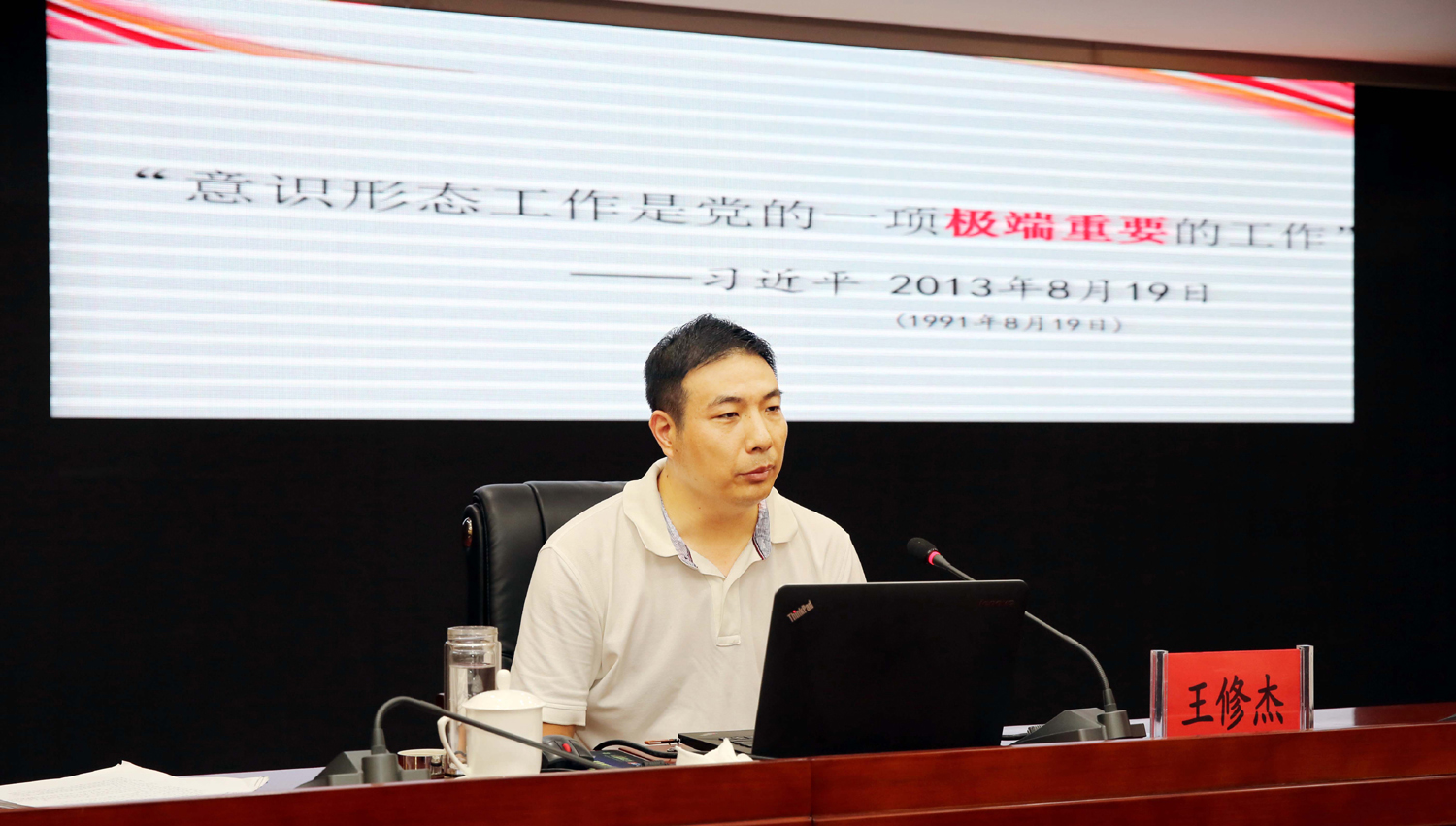 王修杰以“牢牢掌握意識形態(tài)工作的領(lǐng)導(dǎo)權(quán)”為題,結(jié)合國際國內(nèi)形勢和我市實際,圍繞充分認識意識形態(tài)工作的極端重要性、深刻把握當(dāng)前意識形態(tài)領(lǐng)域復(fù)雜形勢、全面落實黨委意識形態(tài)工作責(zé)任制等方面內(nèi)容,深入淺出的剖析解讀了意識形態(tài)工作的基本內(nèi)涵、重大意義,報告主題鮮明、內(nèi)涵深刻、闡述透徹、聯(lián)系實際、條理清晰,既有理論思考、又有經(jīng)驗總結(jié),為與會人員深刻理解和把握新時代國企意識形態(tài)工作的新使命、新要求、新任務(wù)、新方法具有很強的現(xiàn)實指導(dǎo)意義。