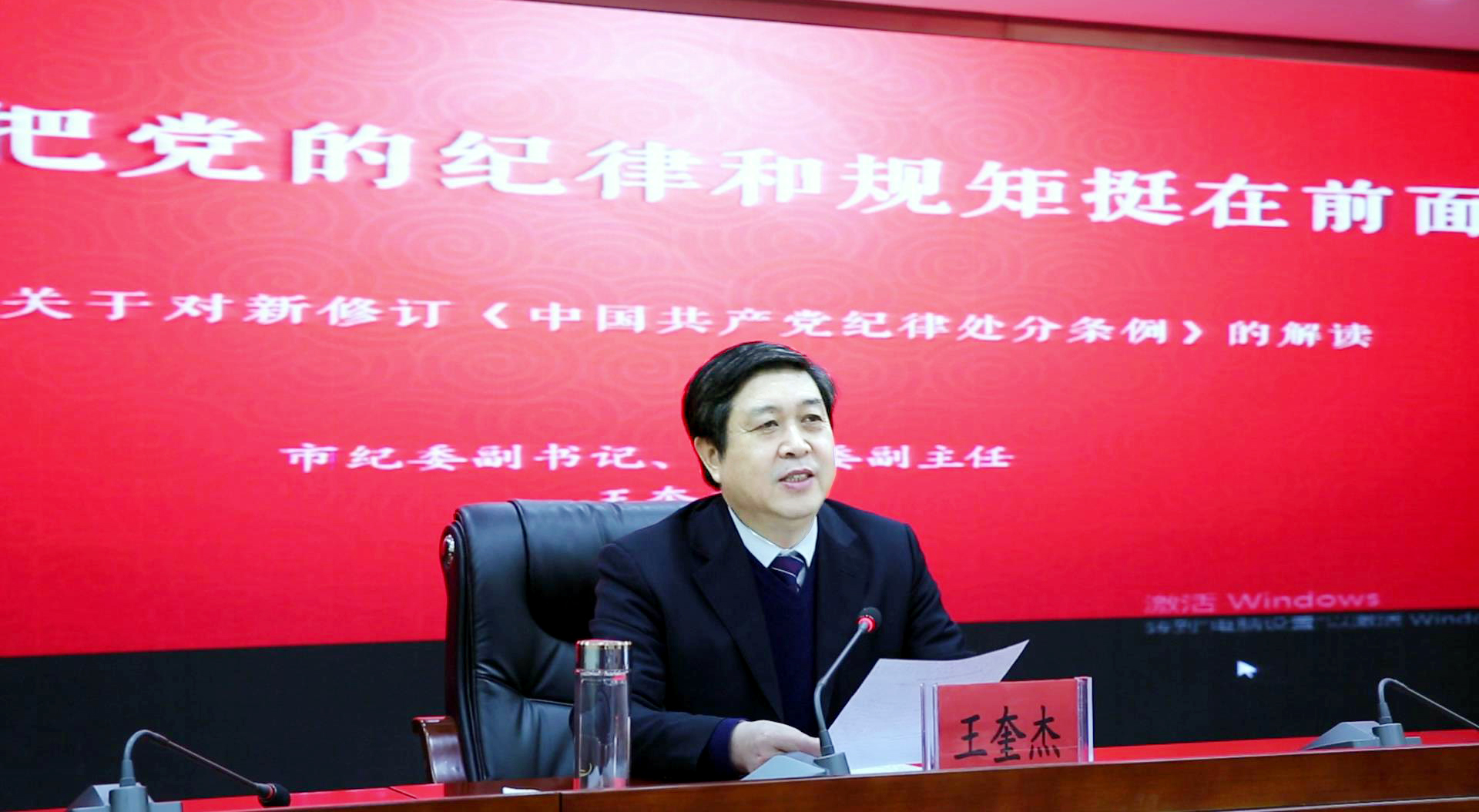 王奎杰?chē)@要充分認(rèn)識(shí)新《條例》的重大意義,切實(shí)增強(qiáng)學(xué)習(xí)貫徹的自覺(jué)性和堅(jiān)定性;要認(rèn)真學(xué)習(xí)新《條例》的增改內(nèi)容,引導(dǎo)黨員干部做到心有所畏、言有所戒、行有所止;要迅速掀起新《條例》學(xué)習(xí)宣傳熱潮,著力推動(dòng)全面從嚴(yán)治黨向縱深發(fā)展等三個(gè)方面,對(duì)《條例》進(jìn)行了深入解讀,報(bào)告內(nèi)容豐富、條理清晰、重點(diǎn)突出,對(duì)廣大黨員干部更好地學(xué)深學(xué)透《條例》具有很強(qiáng)的指導(dǎo)意義。