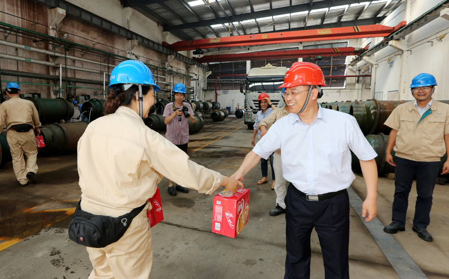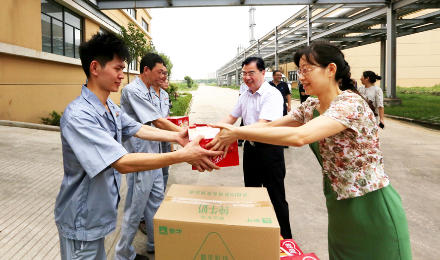 炎炎夏日送清涼,點(diǎn)滴關(guān)愛暖人心。連日來,驕陽似火,酷暑難耐。7月18-20日,集團(tuán)公司領(lǐng)導(dǎo)楊龍、胡建明、張其海、朱天松、戴鴻鳴、汪群、匡友本等輕車簡從,分赴基層一線,進(jìn)車間、入工地、到灘(田)頭,慰問在高溫下堅(jiān)守崗位的廣大員工,送去綠豆、白糖等防暑降溫品,在炎炎夏日中將“清涼”送到職工心坎上。