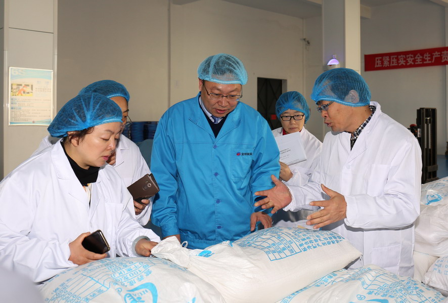 11月7日,組長(zhǎng)高湘陵、省經(jīng)信委消費(fèi)品工業(yè)處姜輝、張洪忠處長(zhǎng)一行在市經(jīng)信委副主任盧忠寶的陪同下,到金橋制鹽公司進(jìn)行國(guó)家食鹽定點(diǎn)生產(chǎn)企業(yè)證書、食鹽批發(fā)許可證書換證驗(yàn)收審核。集團(tuán)公司總經(jīng)理胡建明、總會(huì)計(jì)師匡友本參加驗(yàn)收。