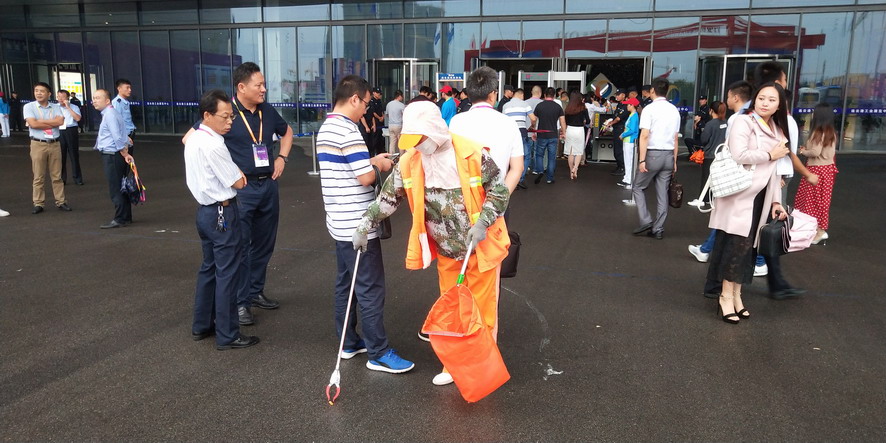 9月14日,連續(xù)忙碌了兩個(gè)禮拜的職工們還沒(méi)來(lái)得及休息,便又投入到“連博會(huì)”的準(zhǔn)備工作中去。由于本屆“連博會(huì)”共有來(lái)自27個(gè)國(guó)家和地區(qū)的420家企業(yè)參展,展覽總面積達(dá)3.7萬(wàn)平方米,各家展商在布置展臺(tái)時(shí),各類生活垃圾、裝修垃圾等一度將該公司布設(shè)的100多個(gè)垃圾桶都塞滿了,在安排好人工清理的同時(shí),該公司還安排垃圾清運(yùn)車對(duì)積存垃圾進(jìn)行清理清運(yùn),組織灑水車對(duì)會(huì)場(chǎng)及周邊道路進(jìn)行沖洗,一直到9月18日晚上9點(diǎn)左右才完成準(zhǔn)備工作。19日“連博會(huì)”開(kāi)幕當(dāng)天,負(fù)責(zé)現(xiàn)場(chǎng)保潔工作的職工們?cè)缟?/span>6點(diǎn)多就趕到了會(huì)場(chǎng),冒雨在會(huì)場(chǎng)周邊開(kāi)始忙碌,一臺(tái)大型清掃車和一臺(tái)灑水車也在會(huì)場(chǎng)旁隨時(shí)待命。到了中午,當(dāng)展商們?cè)谑覂?nèi)小憩的時(shí)候,室外的職工們?yōu)榱瞬坏⒄`事,站在風(fēng)口匆匆地扒拉兩口混雜著雨水的盒飯,就又投入到緊張的清理工作中去。僅19號(hào)開(kāi)幕當(dāng)天,累計(jì)清理各類垃圾7噸左右,為“連博會(huì)”的正常召開(kāi)提供了一個(gè)干凈、整潔的會(huì)場(chǎng)環(huán)境。