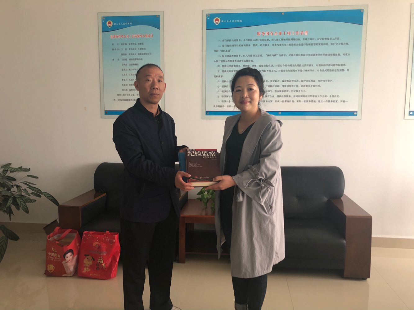 10月17日,灌云縣檢察院監(jiān)察室主任范玉兵到灌西投資公司紀(jì)委調(diào)研工作,進(jìn)一步加強(qiáng)檢察院與企業(yè)溝通和了解,促進(jìn)“檢企共建”活動(dòng)深入開展。