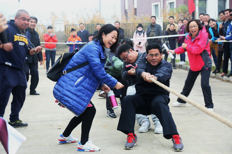 11月19日,美多利科創(chuàng)園內(nèi)彩旗招展、樂聲飛揚,臺北投資公司2016年度職工運動會在這里隆重舉行。來自公司機關(guān)及基層單位的11支代表隊共186名運動員在拔河、集體跳繩、“團結(jié)奮進”、“運轉(zhuǎn)乾坤”、“財源滾滾”、“齊心協(xié)力”、“車輪滾滾”、“摸石頭過河”、雙人踢毽、定點投籃等10個比賽項目中展開角逐。