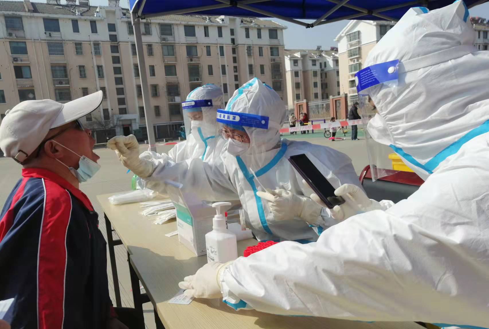 “現(xiàn)在我們是封控區(qū),不能出去給政府添亂,閑也是閑著,所以社區(qū)一招手我們就來(lái)了”這是臺(tái)北女工委副主任宋文靜的一席話(huà)。這波疫情來(lái)的突然,緊急核酸檢測(cè)緊缺志愿者服務(wù)。在公司”戰(zhàn)疫情、爭(zhēng)貢獻(xiàn)“主題實(shí)踐活動(dòng)感召下,她已經(jīng)在小區(qū)擔(dān)綱核酸檢測(cè)志愿者有兩個(gè)夜晚了。而這一幕決不只在海州主城區(qū),在開(kāi)發(fā)區(qū)昌圩社區(qū),臺(tái)北志愿服務(wù)隊(duì)已經(jīng)成為社區(qū)防疫主力。疫情伊始,臺(tái)北下屬海州灣公司黨支部一班人就已經(jīng)奮戰(zhàn)在社區(qū)防疫一線(xiàn)。黨支部副書(shū)記蘇玲、女工胡超,與專(zhuān)業(yè)醫(yī)護(hù)人員一道,穿上厚重防護(hù)服,直接站在核酸檢測(cè)最前線(xiàn),這一站就是12小時(shí)。值班后稍作休息他們就又聯(lián)系總經(jīng)理霍正鋼、翔立黨支部副書(shū)記姜海洋、入黨積極分子朱文健等參與聯(lián)防聯(lián)控,擔(dān)當(dāng)疫情義務(wù)宣傳員。