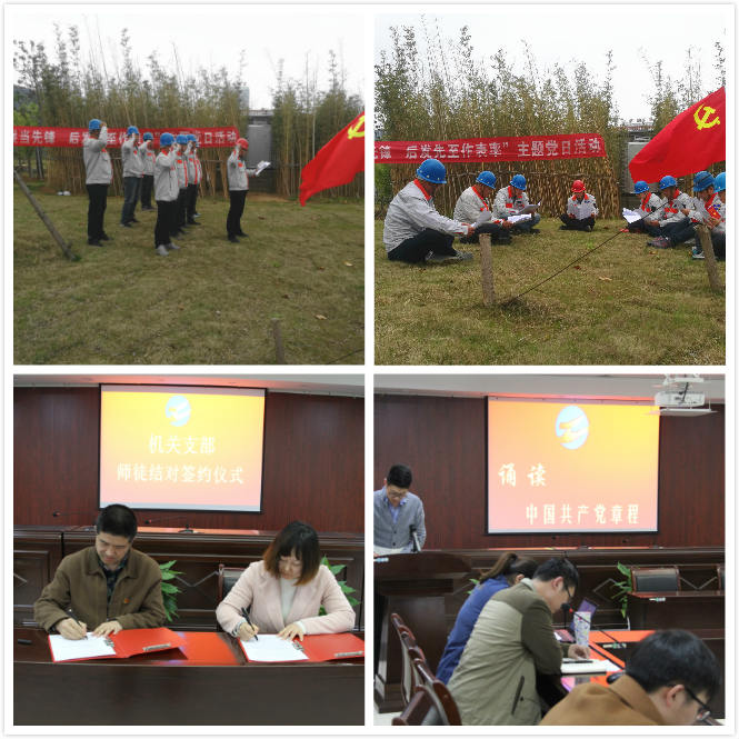 主題黨日+師徒結(jié)對。為了幫助新任職員工能夠快速的勝任工作,機關(guān)支部為6名職工進行了師徒結(jié)對。青年職工身上創(chuàng)新的能力、工作的激情感染著老師傅;老師傅更是把自己的一切毫無保留地傳授給徒弟,帶徒弟的過程也是在不斷完善自己,取人之長,補己之短。這是一個師徒相長的過程,師徒在活動中,互相學(xué)習(xí),互相幫助,努力提高自身素質(zhì),共同獲得了提高。