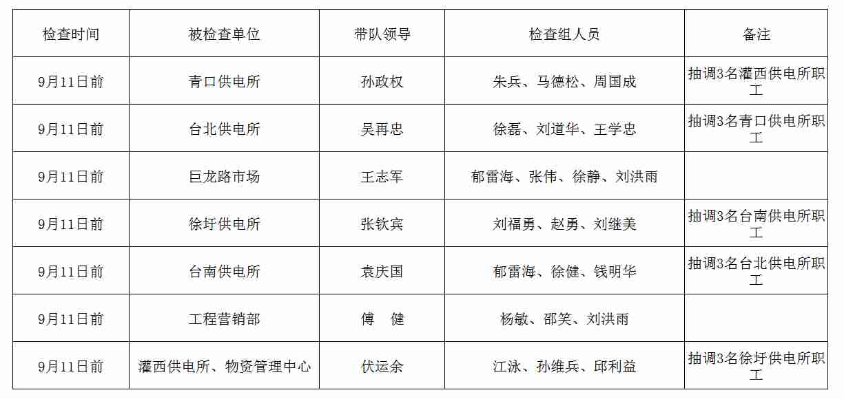 公司2019年雙節(jié)前(中秋、國慶)安全大檢查日程安排