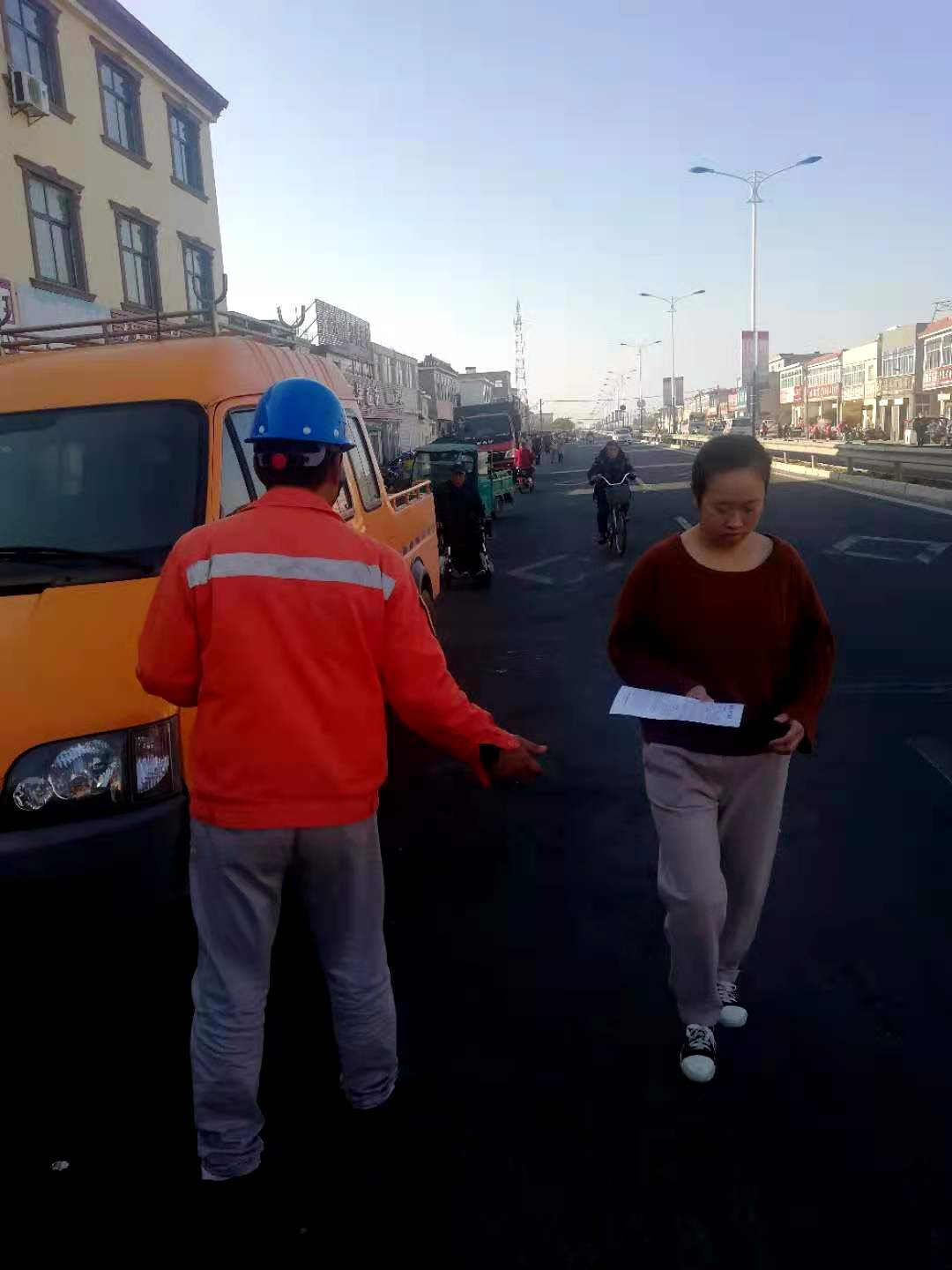灌西供電所的員工正在向當(dāng)?shù)厝罕娺M(jìn)行節(jié)約用電宣傳。