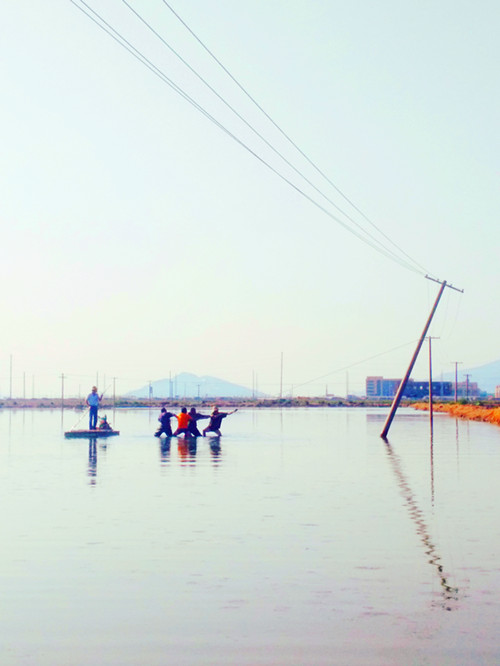 9月20日,該所組織人員進(jìn)行搶修。搶修人員經(jīng)過(guò)現(xiàn)場(chǎng)勘查后,發(fā)現(xiàn)隱患地點(diǎn)處于池塘中,搶修車輛等大型工器具無(wú)法到達(dá),只能靠人工搶修。在與魚塘養(yǎng)殖戶協(xié)商后,俞德春、楊祖加、楊新軍等搶修人員在對(duì)低壓線路采取停電、驗(yàn)電、掛接地等安全措施后,利用小木船來(lái)回穿梭、傳送材料,再跳入沒(méi)腿深的水里,將電桿扶正、加固。此時(shí),水面上的船、水中的人、拖拽的線路成了鏡頭中的新聞亮點(diǎn)。最后在經(jīng)過(guò)半個(gè)多小時(shí)的特色搶修后,成功恢復(fù)供電。(錢明華)