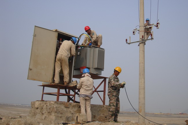 金海一期二次B3區(qū)加固地基工程要求在5月10前具備全面抽真空條件。臺(tái)北供電所承擔(dān)此項(xiàng)電力工程,需架設(shè)10千伏線路2280米,安裝19臺(tái)變壓器及配電箱,工程總量170萬元。為使工程按時(shí)完成,維護(hù)供電所的信譽(yù),展示自己的實(shí)力,該所細(xì)心謀劃,調(diào)配車輛,拉材備料,認(rèn)真組織人力抓緊施工?,F(xiàn)場(chǎng)施工條件惡劣,亂石堆放,腳下無路,給施工作業(yè)帶來重重困難。職工作業(yè)汗流浹背,吃苦耐勞,無怨無悔。憑著頑強(qiáng)的斗志,認(rèn)真地堅(jiān)守的崗位,聚精會(huì)神地操作,為連云新城“一年拉框架,兩年出形象,三年基本建成”的戰(zhàn)略建設(shè),奉獻(xiàn)自己的力量。