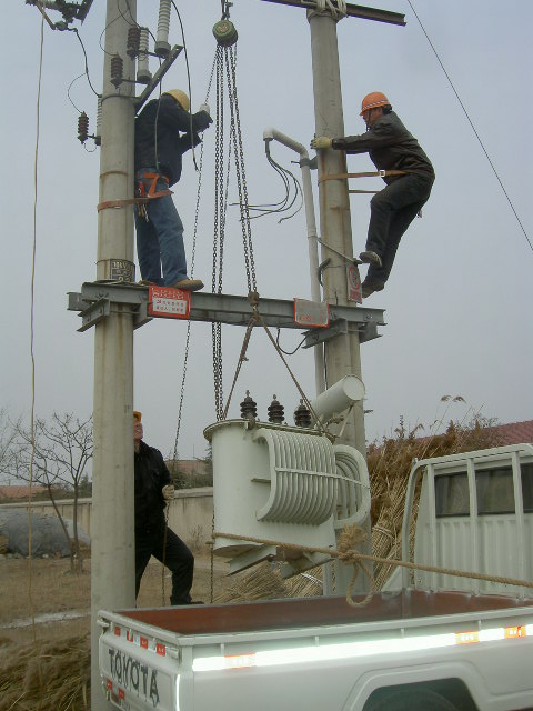 春節(jié)前夕,徐圩供電所加大電力設(shè)備和線路巡視維護力度,將預(yù)防大面積停電事故作為節(jié)前安全生產(chǎn)的首要任務(wù)。該所認真組織人員深入轄區(qū)查找線路和設(shè)備存在的安全隱患,提前作好安排和準備,2月5日發(fā)現(xiàn)辛高圩地區(qū)99#變壓器節(jié)日期間容量可能不夠,便及時調(diào)換了變壓器,確保用電安全。(圖為該所職工在調(diào)換變壓器)(馬德松)