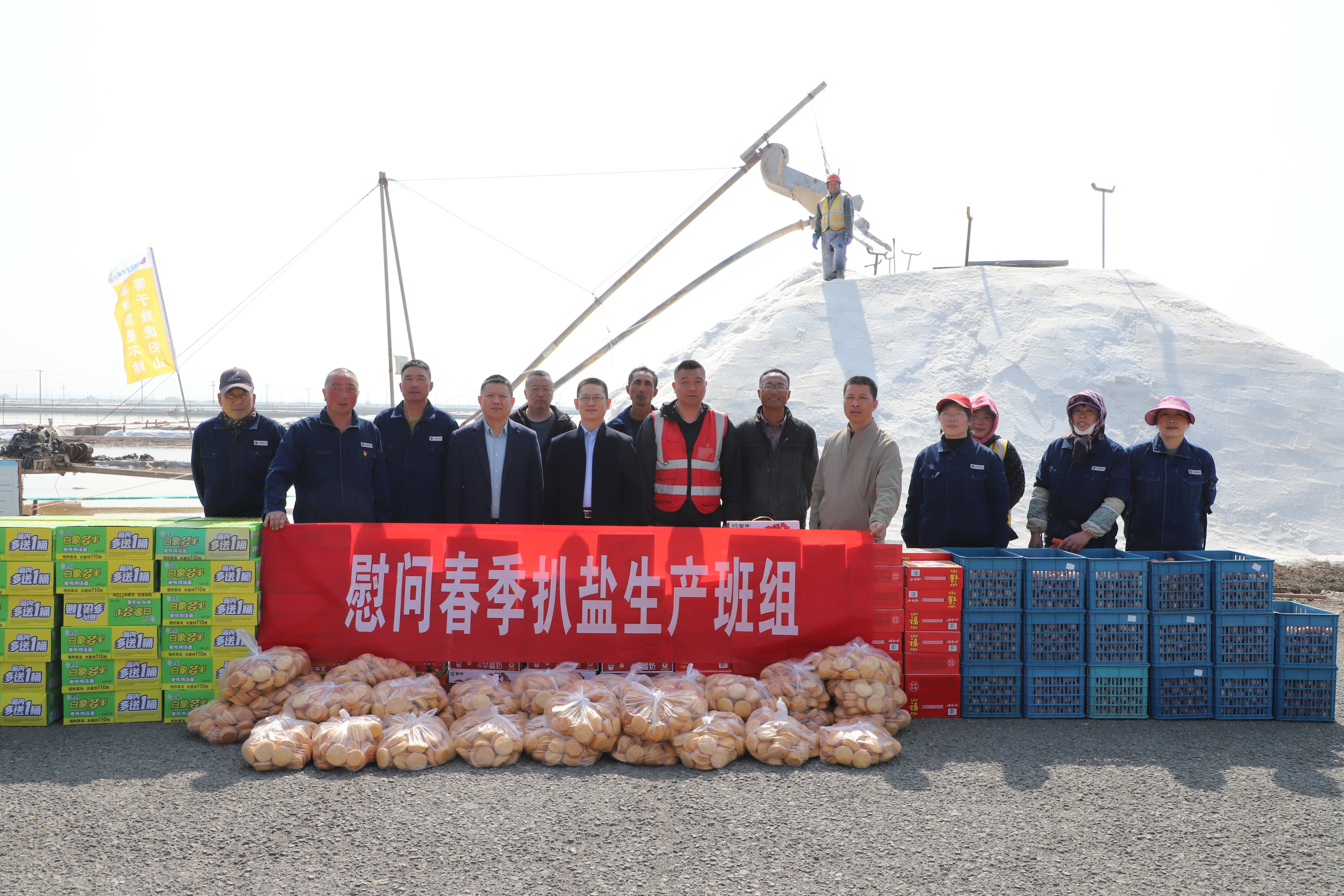 “你們辛苦了,我代表公司來看望大家。”在新河十班與埒南十一班,吳衛(wèi)平與扒鹽現(xiàn)場職工握手問好,感謝他們在過去的一年為日曬制鹽公司的原鹽生產(chǎn)所付出的辛勤努力,叮囑他們一定要落實(shí)落細(xì)扒鹽生產(chǎn)措施,增強(qiáng)責(zé)任感和警覺性,嚴(yán)格執(zhí)行各項(xiàng)規(guī)章制度,切實(shí)保障扒鹽期間的安全生產(chǎn),并送上雞蛋、八寶粥、方便面、牛奶等物品。