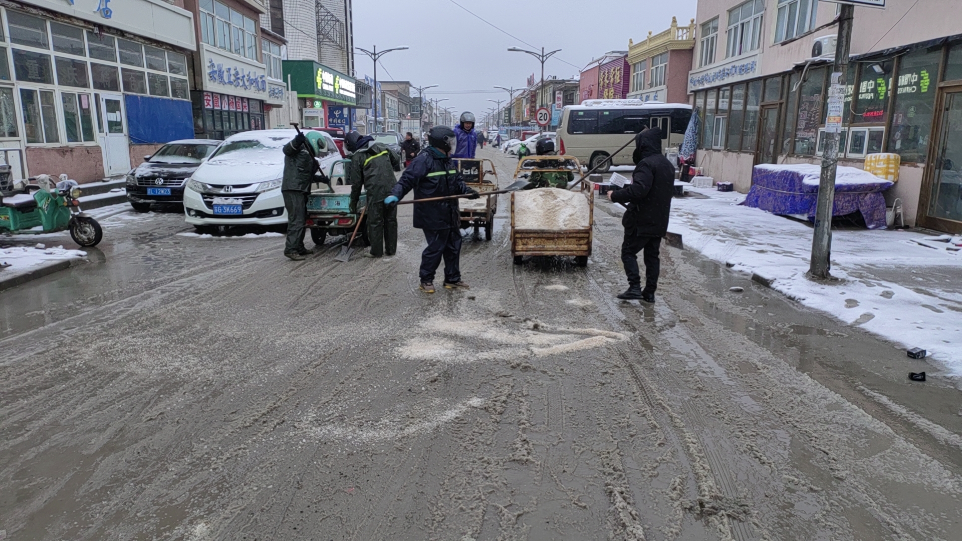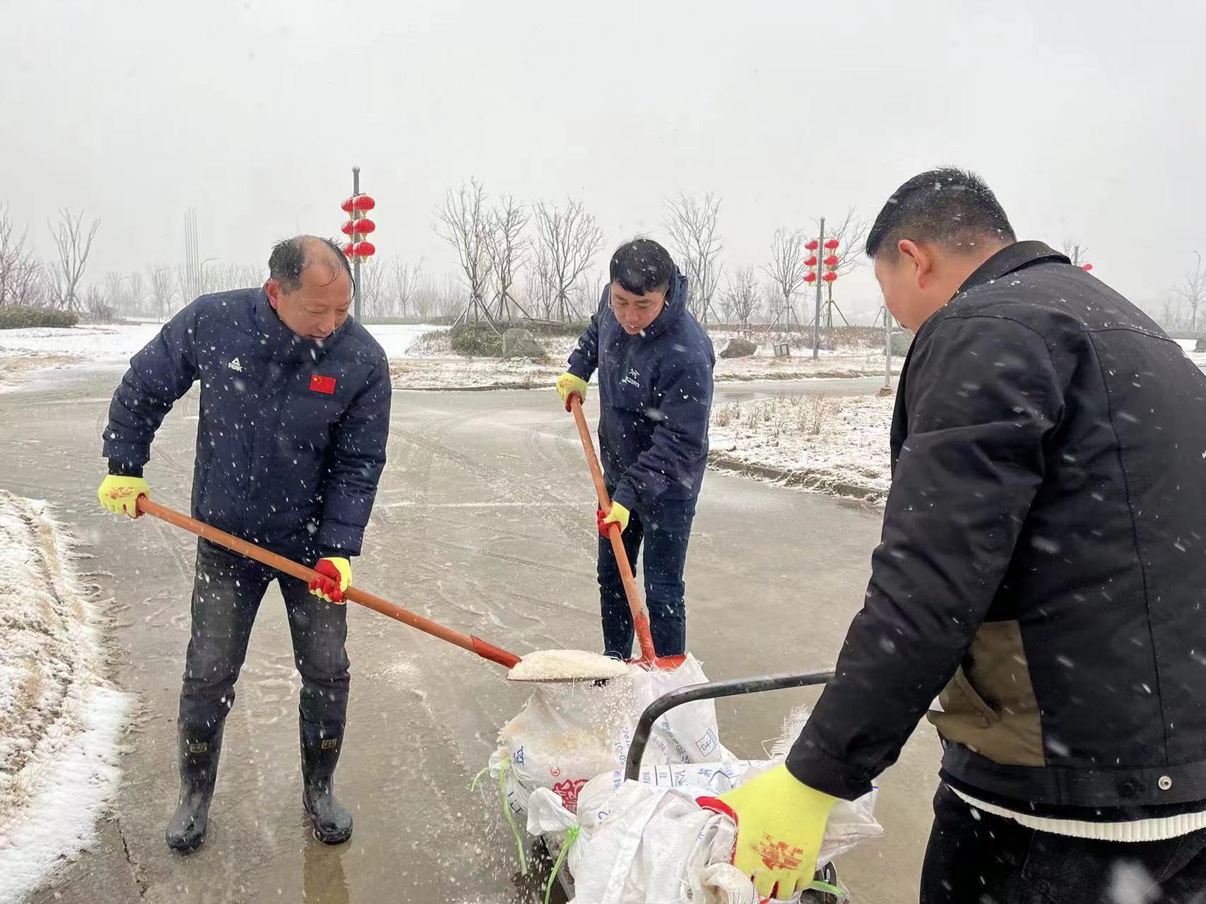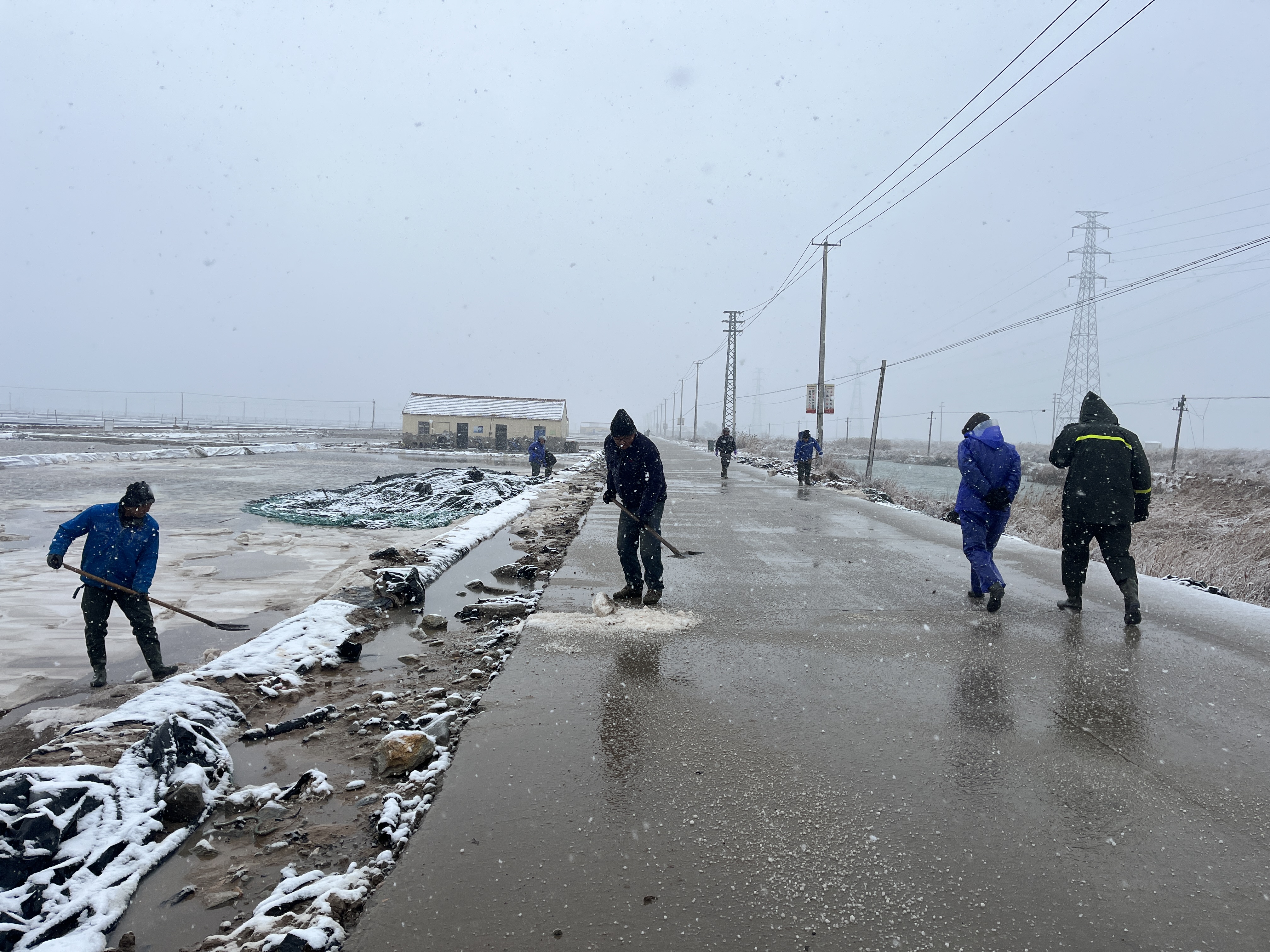 以雪為令,全力奔赴清雪戰(zhàn)一線。隨著降雪量增大,采取“人工+機械”的作業(yè)方式,使用自產(chǎn)原鹽融雪劑對轄區(qū)中二圩居民點、鹽灘內(nèi)部道路、辦公區(qū)域等20余條主次干道不間斷地毯式清雪除冰作業(yè)。清雪現(xiàn)場,大家不畏嚴寒,積極行動,鏟的鏟、推的推,干得熱火朝天,開辟出一條方便群眾出行的“安全路”。截止目前,已累計出動車輛30余臺次,300余人次參與清雪除冰行動,確保職工群眾“雪中通行,雪后路清”。