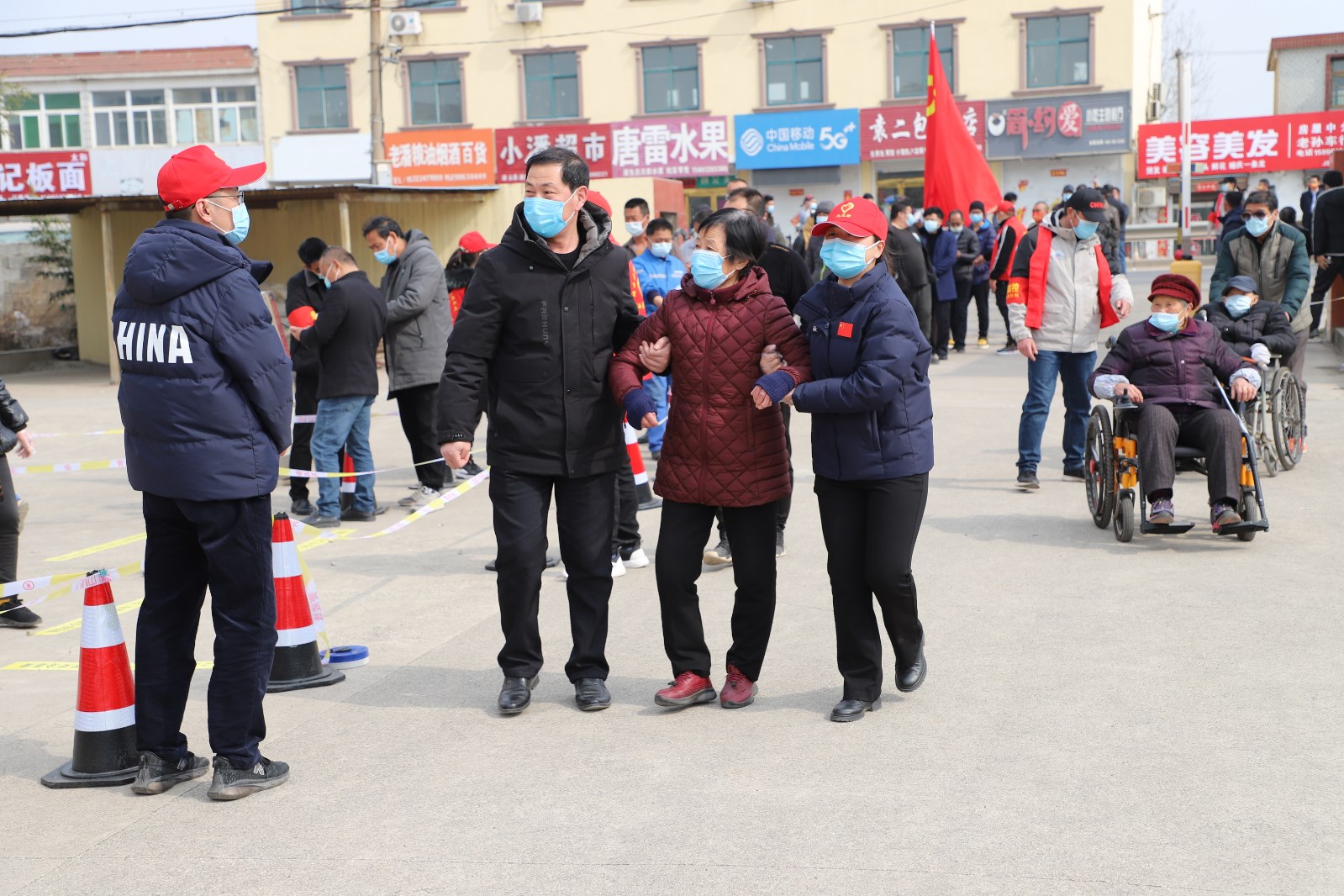 檢測當(dāng)天,上午7點半核酸檢測點準(zhǔn)備就緒,核酸檢測正式開始。檢測點用警戒線拉起通道,居民均按規(guī)定佩戴口罩有序排隊。排隊候檢的居民先登記身份信息及聯(lián)系方式,再由引導(dǎo)員帶隊到指定點位接受醫(yī)護人員的采樣,年紀大且腿腳不便的老人由現(xiàn)在志愿者攙扶,優(yōu)先進行核酸檢測。采樣完畢后,大家按照標(biāo)識盡快從出口處離開檢測點,減少人員聚集。王靜、許冬彥等志愿者不時地提醒大家注意安全、保持一定安全距離,并維持秩序。整個過程緊張有序,核酸檢測工作于下午五點左右順利完成。