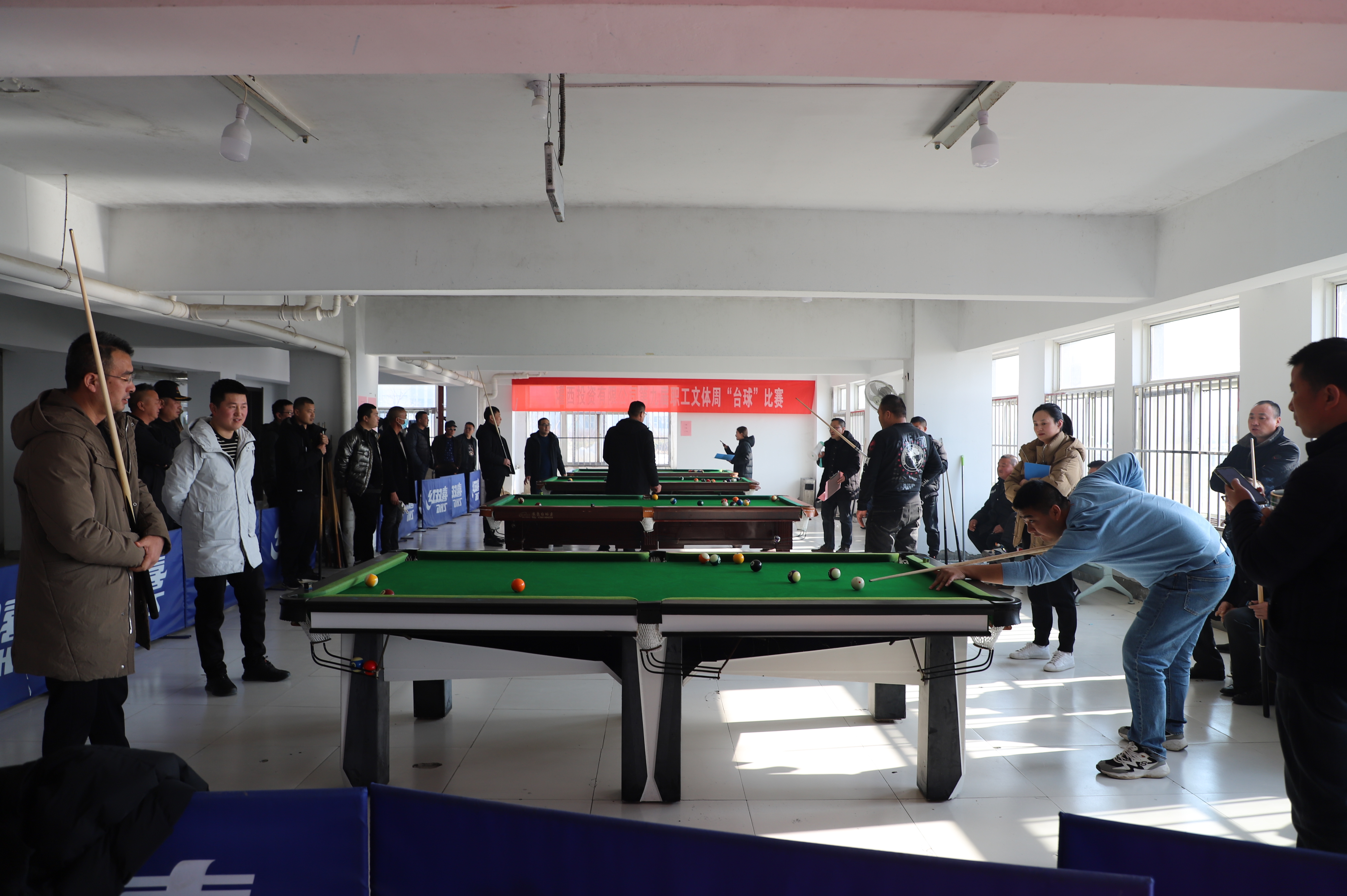 12月21日下午,臺(tái)球比賽在裁判員一聲令下正式開始,來自各個(gè)單位56名選手,分為8組進(jìn)行比賽,采取單循環(huán)淘汰規(guī)則,小組內(nèi)進(jìn)行逐對(duì)“廝殺”,小組前兩名出線。比賽過程相當(dāng)激烈,有的眾多高手被分在一組,俗稱“死亡之組”,每個(gè)人臉色凝重,場外圍滿了觀眾;有的爆出“冷門”,去年獲得第一名的選手第一輪慘遭淘汰;有的選手比較緊張,洞門門口球都沒有打進(jìn)。經(jīng)過激烈角逐,共有16名選手出線。
