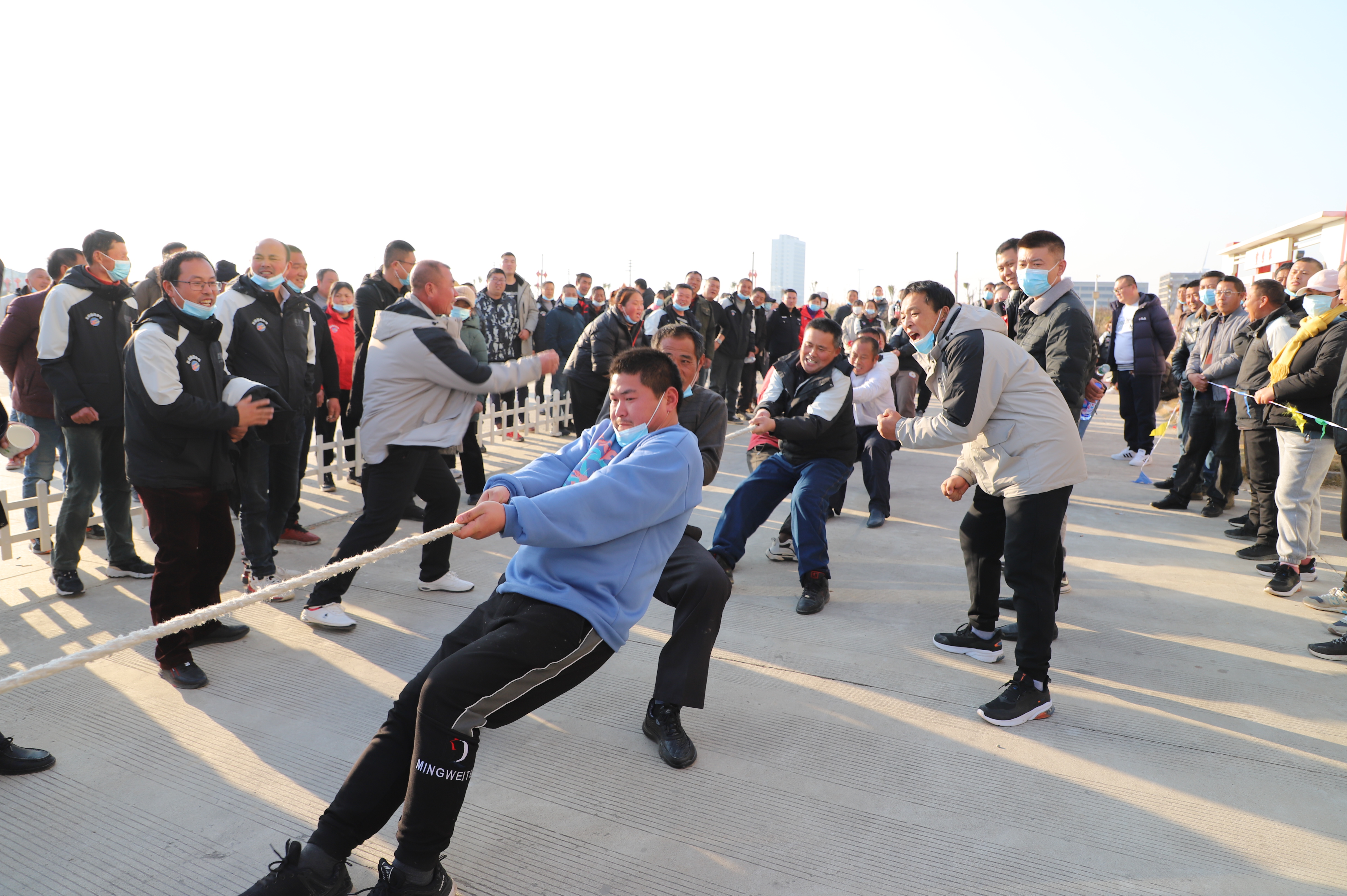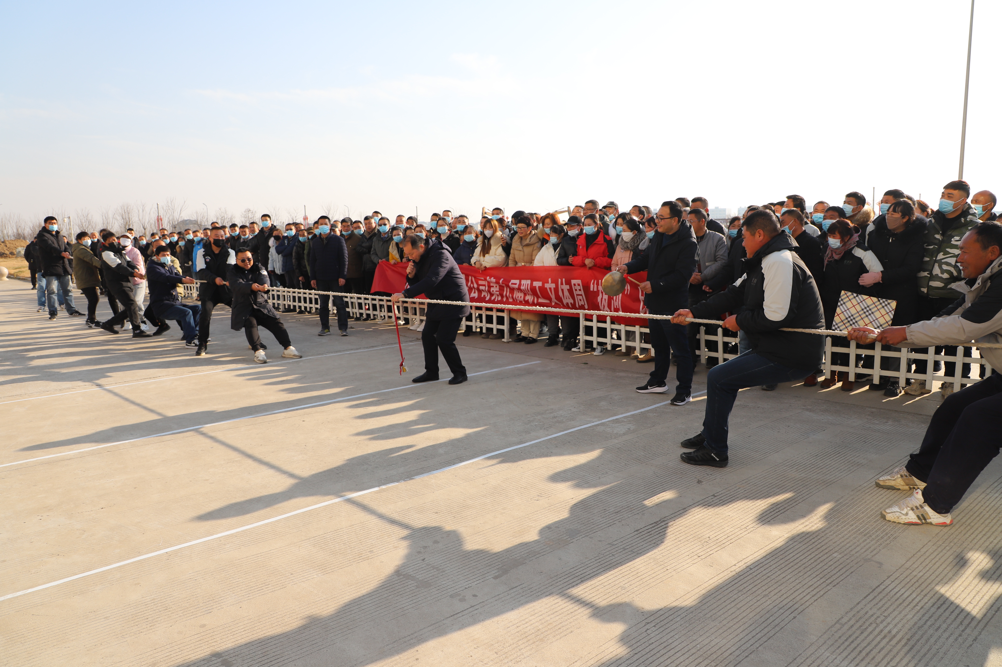 開幕式結束以后,緊張激烈的拔河比賽立即展開。由新河、埓南、宵洋等單位組織的13支參賽隊伍按照抽簽順序逐一上臺亮相。賽場上,鼓舞聲、吶喊聲此起彼伏,參賽隊員們團結協(xié)作、不到最后一刻永不言棄的精神贏得了在場觀眾的陣陣掌聲。經過近一個小時的激烈角逐,最終埓南制鹽分公司一隊力壓群雄,奪取拔河比賽第一名,新河制鹽分公司二隊、新河制鹽分公司一隊及宵洋物流公司代表隊分獲二至四名。
