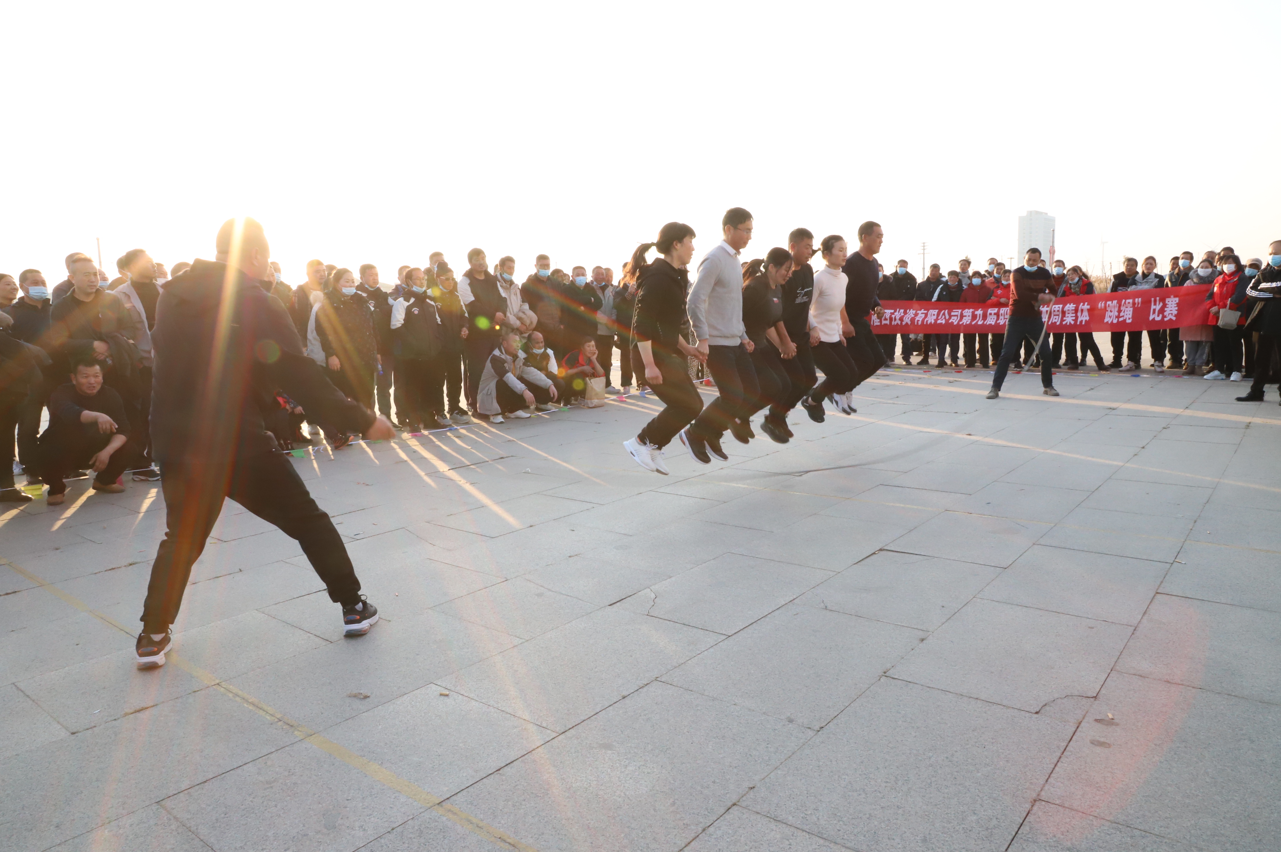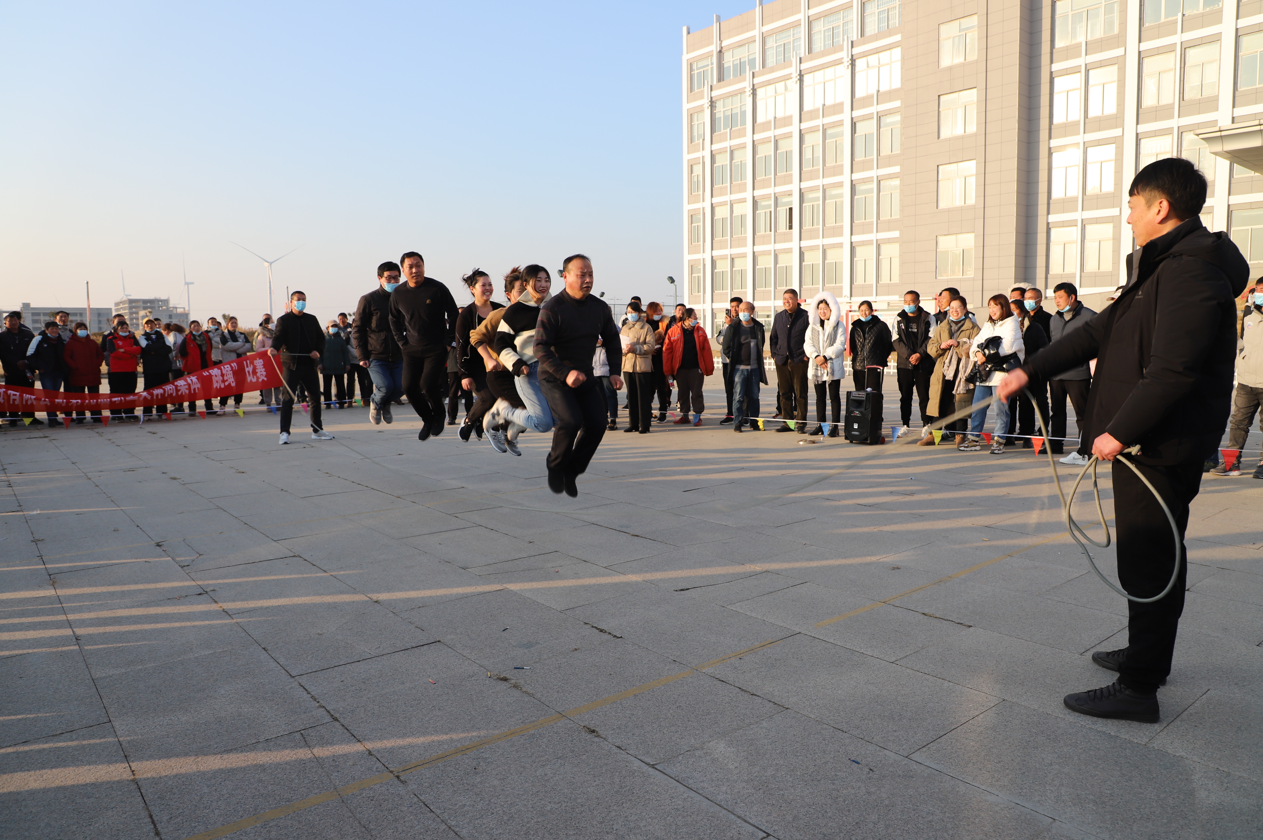 隨后進行跳繩比賽,來自南翼、新河、埒南等10支參賽隊伍逐一上臺比賽,觀眾隨著場上比賽隊員跳繩的節(jié)奏,不約而同地打著節(jié)拍、數著數,最終埒南制鹽公司代表隊憑借刻苦訓練與創(chuàng)新——參賽隊員手牽手共同協(xié)作,奪得第一名,新河制鹽公司、宵洋物流公司、生產服務中心分獲二至四名。(西宣)