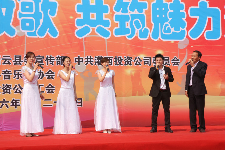 灌云縣委傳部副部長、文聯(lián)主席孫成軍、音協(xié)主席吳平、集團公司工會副主席李嵐琴,灌西投資公司領導班子成員以及來自公司各條戰(zhàn)線的廣大職工和群眾近千人一同觀看了演出。演出前,投資公司黨委副書記、總經(jīng)理李國文作了熱情洋溢的致詞。