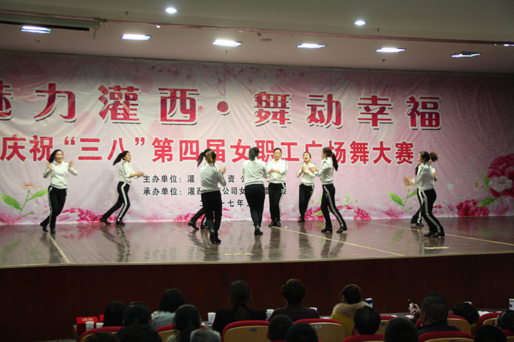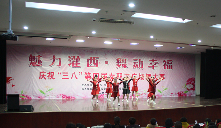 3月8日下午,灌西投資公司第四屆“魅力灌西•舞動幸福”廣場舞比賽在灌云縣臨港產(chǎn)業(yè)區(qū)管委會禮堂舉行,由公司各單位的女工組成的8支代表隊參加角逐,廣大女工用婀娜的舞姿和精彩的表演慶祝國際“三八”婦女節(jié)的到來,觀看比賽的職工群眾有400余人。