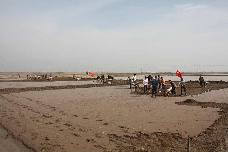 據(jù)了解,《淮鹽制作技藝》已于2015年成功申報國家級非物質(zhì)文化遺產(chǎn)保護項目并審核通過。此次央視攝制組主要圍繞淮鹽發(fā)展歷史來我公司拍攝平面灘、對口灘等制鹽工藝及過程,為制作淮鹽文化宣傳片收集影像資料。埒南制鹽分公司黨支部在接到通知后,高度重視此項工作,迅速組織黨員職工及有經(jīng)驗的班組長投入到灘地改造工作中來,為確保此次拍攝工作順利進行奠定了扎實的基礎?;顒蝇F(xiàn)場,大家按照事先劃分好的區(qū)域分工協(xié)作,互相配合,有鏟泥的,有利用獨輪車推泥的,不一會功夫就完成了四條池埝的制作。據(jù)“淮鹽文化傳承人”韓井軍介紹,下一步在平面灘制作完成后,再對格塊進行晾曬、“三嗆四壓”等工序后才能投入使用。(封楊)