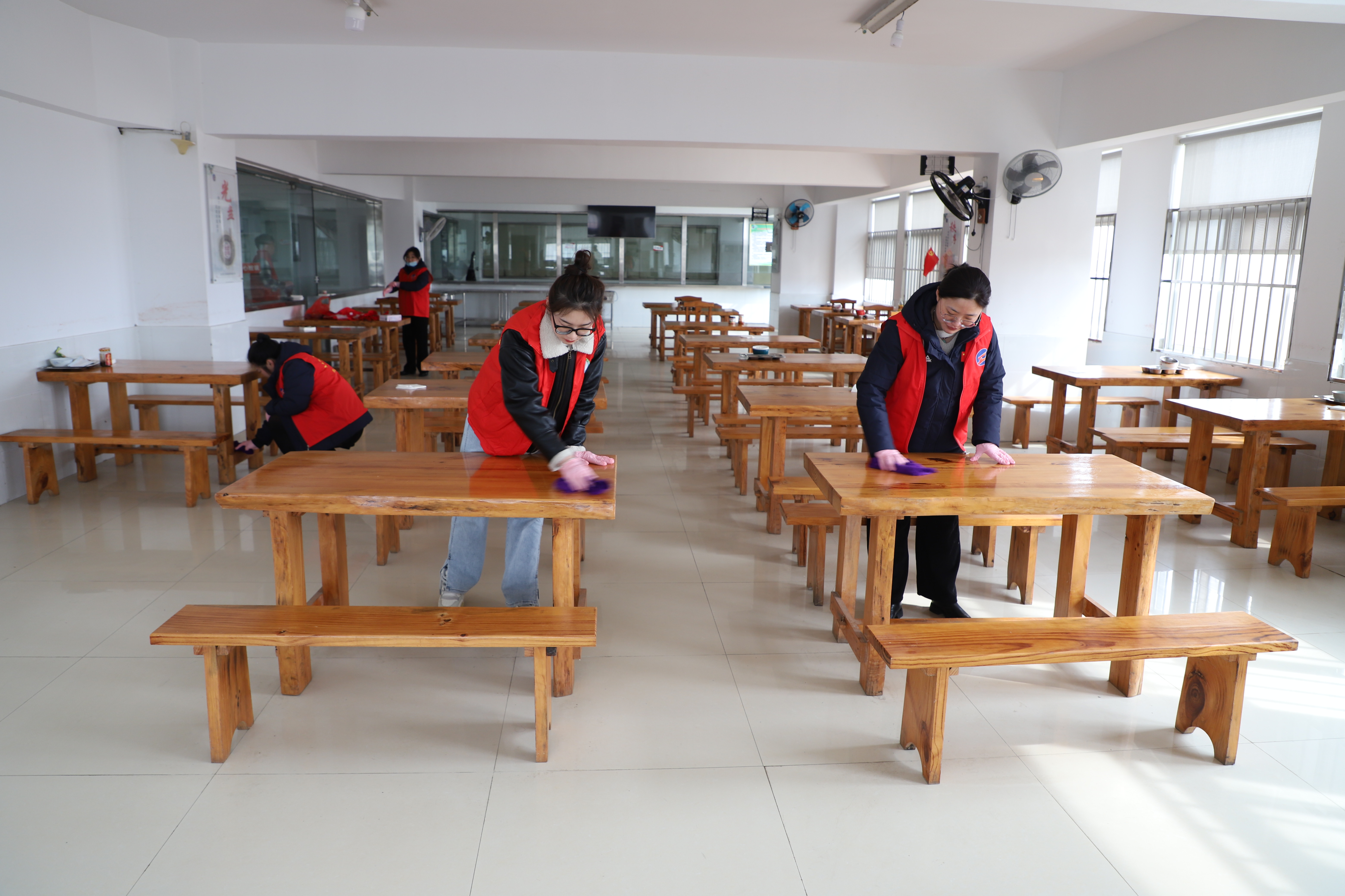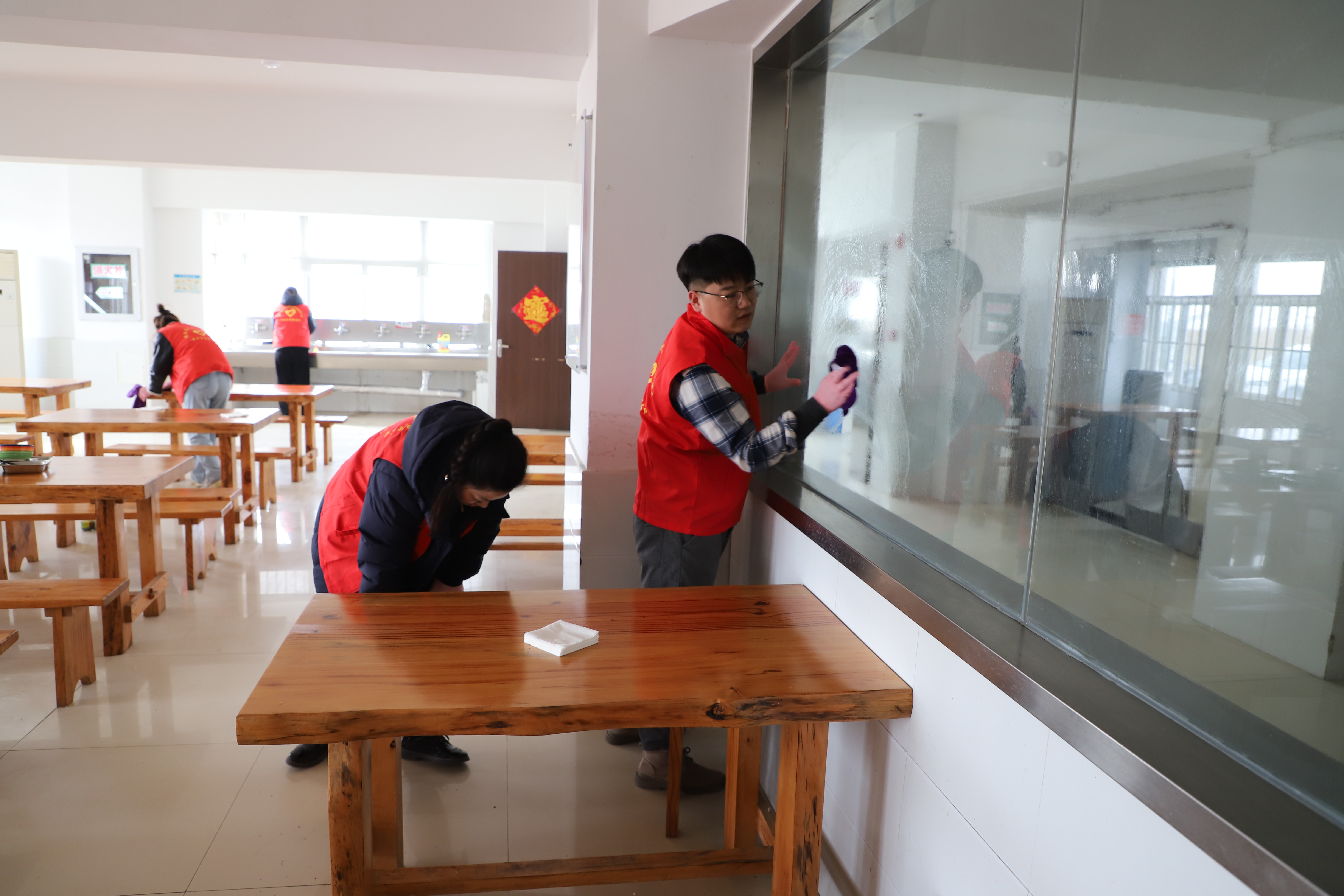 在食堂里隨處可見的志愿者兢兢業(yè)業(yè)的忙碌著,他們不怕臟,不怕累,不遺漏任何衛(wèi)生死角,他們分工合作,有的擦窗,有的抹地,有的清掃垃圾,干勁十足,呈現(xiàn)出一派熱火朝天的勞動場面。經(jīng)過兩個小時的辛勤勞動,食堂環(huán)境煥然一新。(西團)