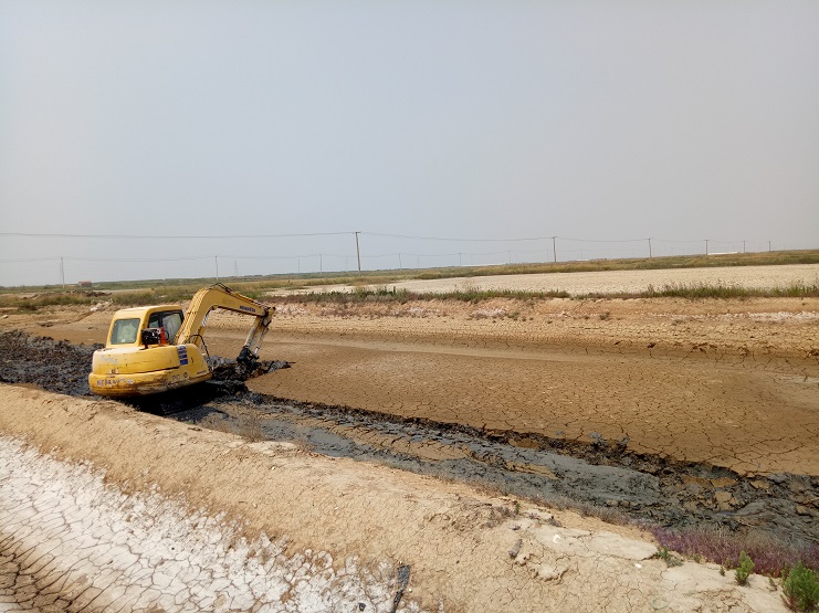 目前,實業(yè)公司制鹽分公司、海鹽基地一班正在進(jìn)行清淤擴(kuò)容改造工程。 海鹽基地一班班組近日對土塘進(jìn)行清淤改造。兩臺挖掘機(jī)頂著連日來的高溫天氣連續(xù)工作。現(xiàn)該班班組的三排土塘清淤改造工作基本完成。(實業(yè)公司)