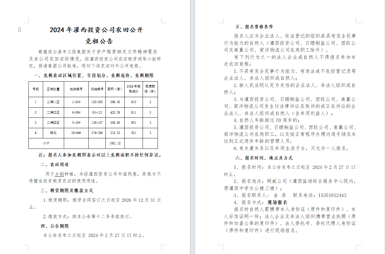 2024年灌西投資公司農(nóng)田公開 競租公告
