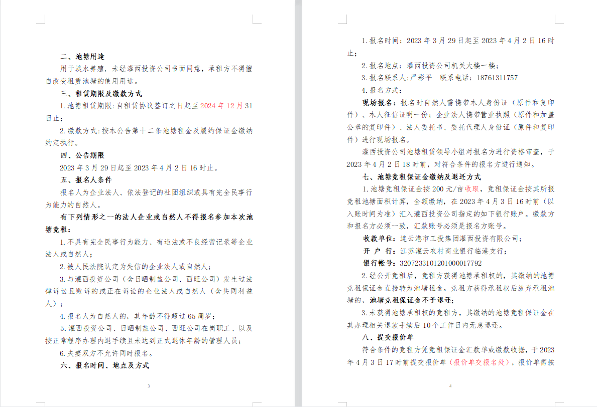 連云港市工投集團灌西投資公司2023年度淡水養(yǎng)殖池塘公開競租第二次公告