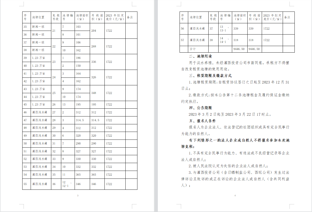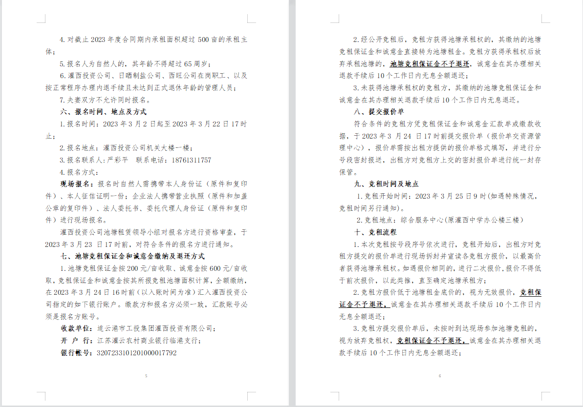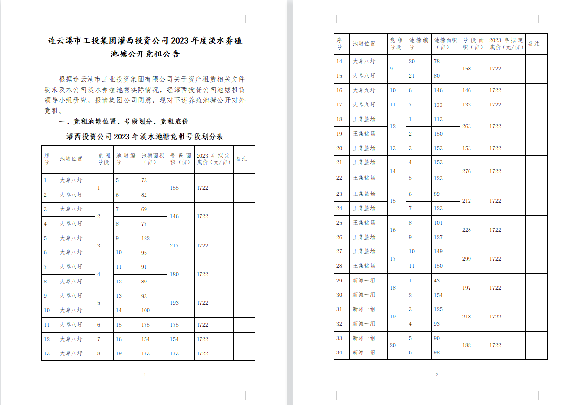 連云港市工投集團(tuán)灌西投資公司2023年度淡水養(yǎng)殖池塘公開競租公告