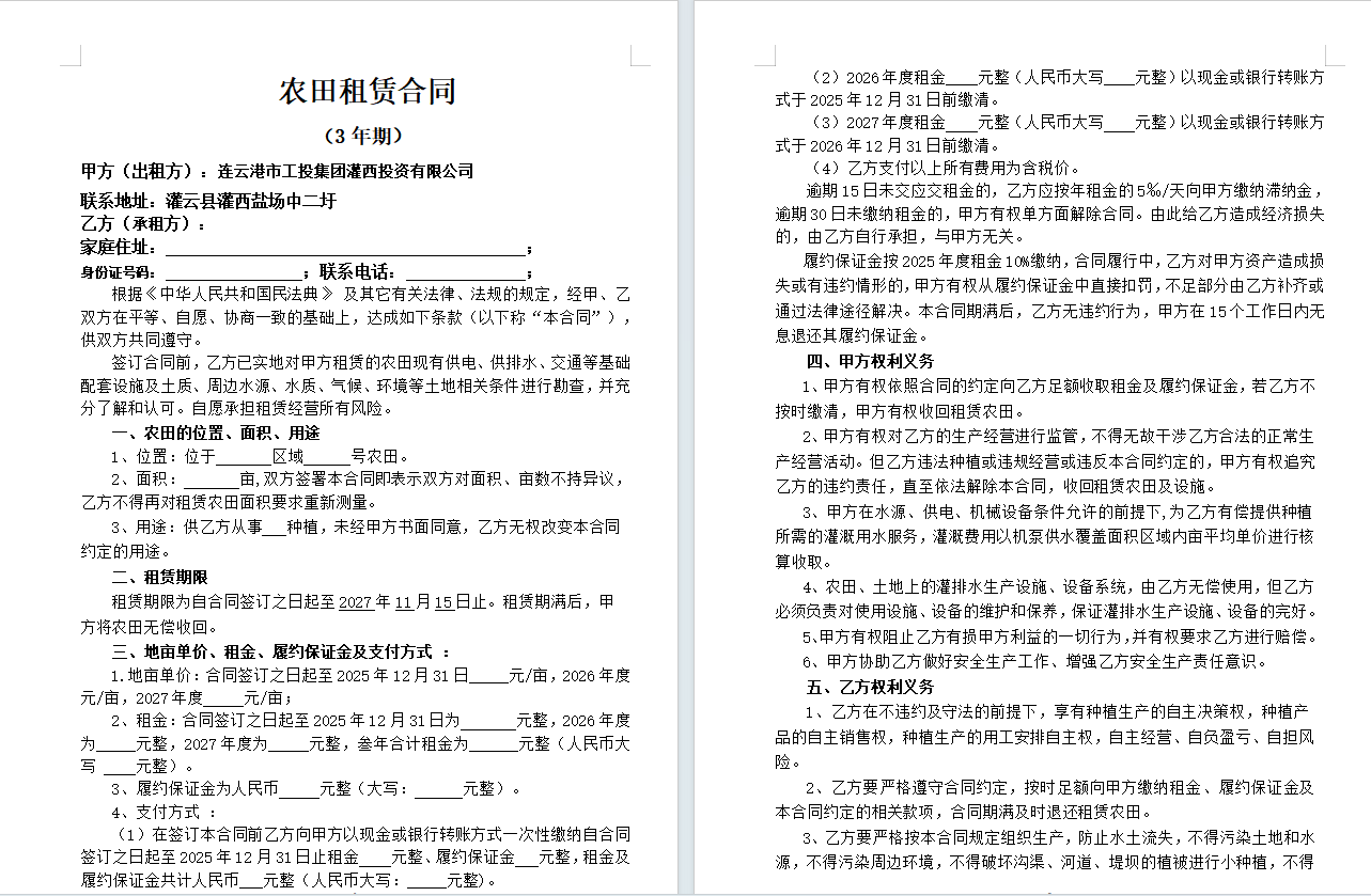 灌西投資公司2024年到期農(nóng)田公開(kāi)競(jìng)租公告