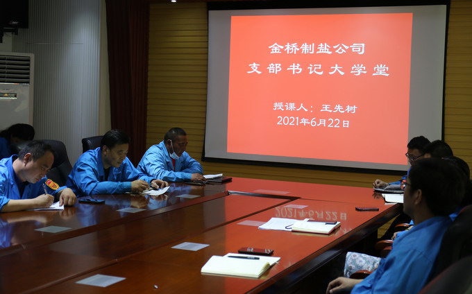 為進(jìn)一步推動公司黨史學(xué)習(xí)教育走深走實,公司黨委組織開展“支部書記大學(xué)堂”活動。6月22日,加工鹽車間黨支部書記王先樹以學(xué)習(xí)黨史“悟思想、辦實事、開新局”為主題,結(jié)合工作實際,為各支部黨員干群上了一堂生動的黨課。