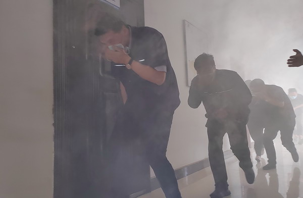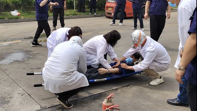 演練分為火災應急疏散、火災應急救援、有限空間應急救援三個部分展開。在火災應急疏散演練中,設(shè)定三樓會議室為模擬火災現(xiàn)場,人員2分鐘內(nèi)從指定逃生路線規(guī)范、有序、迅速撤離到了安全地帶;火災事故應急救援和有限空間應急救援分別模擬紙箱庫著火及地龍有害氣體窒息,分信息報告、啟動應急響應、現(xiàn)場警戒、醫(yī)療救護、事故搶險等各處置環(huán)節(jié),整個演練緊張有序,過程流暢,達到檢驗應急預案的可行性和提高應急救援人員的應急處置能力的效果,為完善我公司應急預案提供實踐依據(jù)。