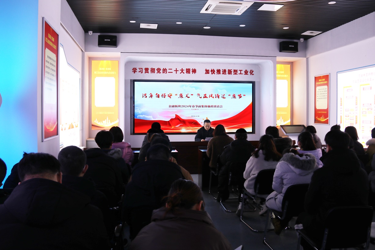 “廉關(guān)”,過(guò)好迎新“廉潔年”。清心為治本,直道是身謀。金融板塊從金融領(lǐng)域的特殊性出發(fā),本著廉政談話全覆蓋的原則,緊盯春節(jié)節(jié)點(diǎn)、緊盯常見(jiàn)“節(jié)日病”,要求黨員干部以上率下,嚴(yán)格要求自己、嚴(yán)格帶好隊(duì)伍,守好責(zé)任田,管好身邊人,做到過(guò)節(jié)不忘警惕,過(guò)節(jié)不忘紀(jì)律,過(guò)節(jié)不忘盡責(zé),嚴(yán)格執(zhí)行中央八項(xiàng)規(guī)定,時(shí)刻保持自省、自警、自律、自勵(lì),清廉過(guò)節(jié),堅(jiān)決杜絕“節(jié)日腐敗”。