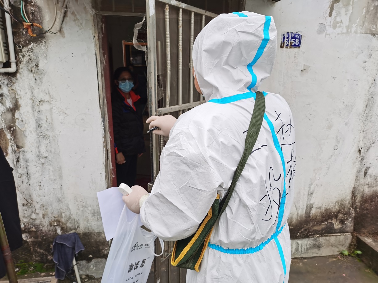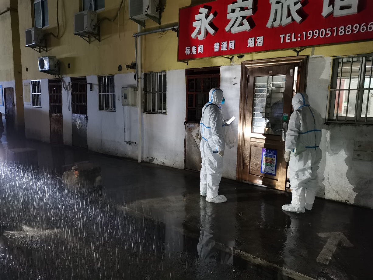 “終于完成任務(wù)了”,看著已被雨水打濕的安裝名單,工投金融板塊的三名志愿者長長地舒了一口氣。志愿服務(wù)隊進駐當(dāng)天就按照社區(qū)的統(tǒng)一安排,立即開展了門磁安裝門磁等一線工作。由于新橋社區(qū)是本輪疫情最早的“爆發(fā)點”,且轄區(qū)內(nèi)多為老舊小區(qū),街巷縱橫、門牌號排列混雜,群租、合租情況普遍,外來務(wù)工人員較多,給安裝工作造成了較大難度,恰巧當(dāng)天夜里下起了大雨,雨水遮擋視線,讓原本復(fù)雜的工作更添新的困難。志愿者一邊電話聯(lián)系,一邊用手電查找街邊的門牌,經(jīng)過3個半小時的摸排,終于完成了全部的安裝任務(wù)。
