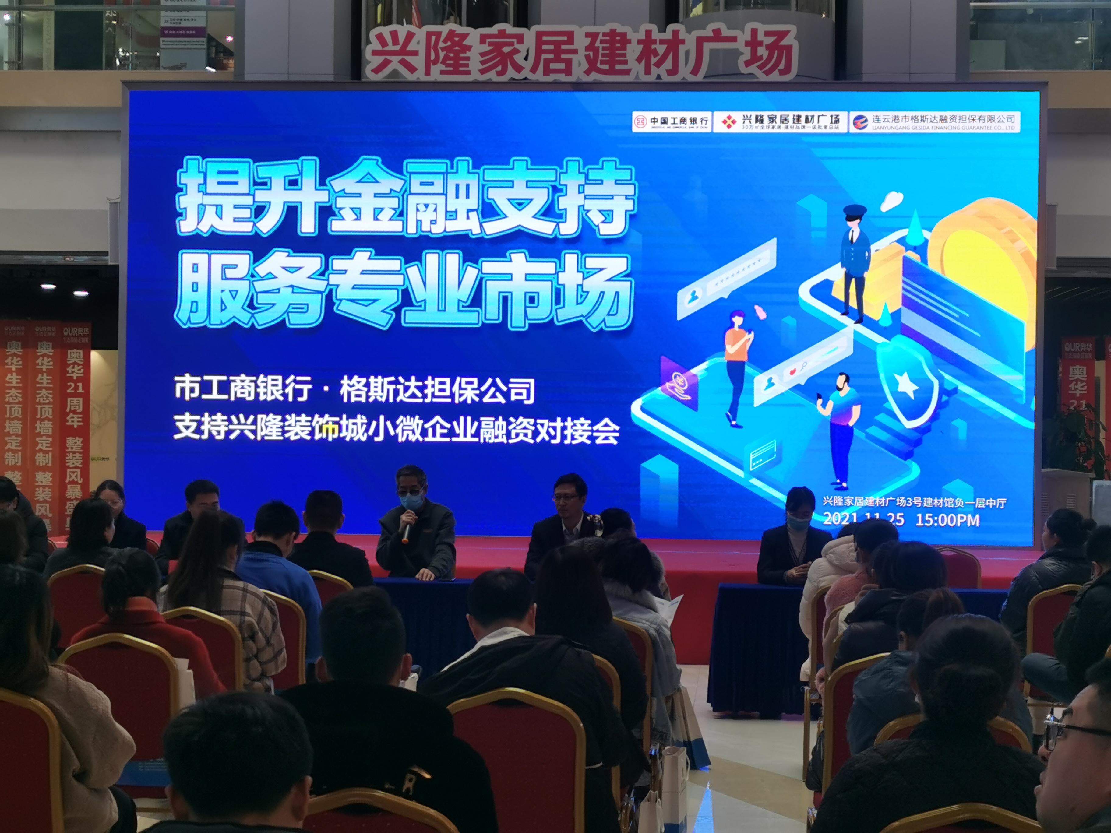 11月25日下午,格斯達(dá)公司聯(lián)合市工商銀行在興隆裝飾城舉辦了主題為“提升金融支持,服務(wù)專業(yè)市場”的小微企業(yè)對接會活動,深入貫徹落實(shí)黨中央、國務(wù)院關(guān)于改進(jìn)小微企業(yè)等實(shí)體經(jīng)濟(jì)金融服務(wù)的部署要求。本次活動為興隆裝飾城的商戶提供了一個了解國家政策與我公司金融服務(wù)產(chǎn)品的平臺,通過現(xiàn)場講解、宣導(dǎo)與交流,深化銀企關(guān)系,為興隆裝飾城的小微企業(yè)融資發(fā)展提供良好的金融環(huán)境。 近50家商戶代表參與活動,活動共有三個環(huán)節(jié):首先,由興隆裝飾城總裁對本次活動的情況進(jìn)行介紹。隨后,由工商銀行及我公司的產(chǎn)品經(jīng)理對小微企業(yè)重點(diǎn)金融服務(wù)進(jìn)行宣講,包括融資擔(dān)保、小額貸款、應(yīng)急轉(zhuǎn)貸與產(chǎn)業(yè)基金等?;顒託夥諢崃?,多家商戶代表對我公司“富民創(chuàng)業(yè)貸”、“小微貸”等產(chǎn)品表現(xiàn)出濃厚的興趣,會后與產(chǎn)品經(jīng)理進(jìn)行深入交流。 本次活動格斯達(dá)公司充分履行服務(wù)實(shí)體經(jīng)濟(jì)職能,優(yōu)化營商環(huán)境、提升小微企業(yè)融資能力,為支持連云港經(jīng)濟(jì)發(fā)展添磚加瓦! |