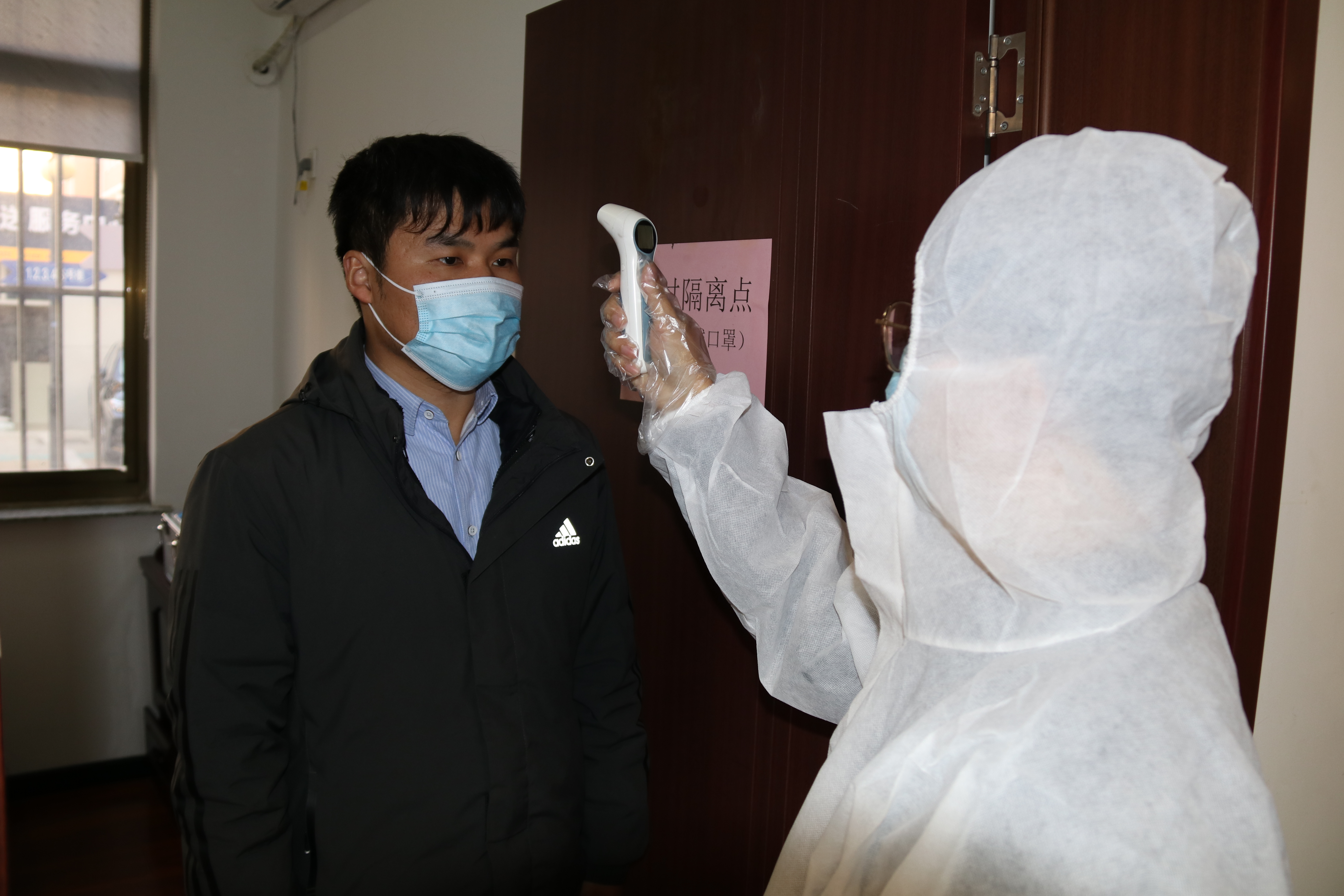 十分鐘后再次確認(rèn)體溫異常,處置組成員向疫情防控領(lǐng)導(dǎo)小組報告情況,經(jīng)小組領(lǐng)導(dǎo)批準(zhǔn),與集團(tuán)、屬地社區(qū)報備后,等待120救護(hù)車接診。