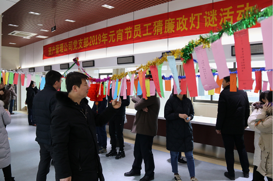 | 為弘揚傳統(tǒng)文化,豐富員工文化生活,營造文明和諧、健康向上的文化氛圍,讓公司員工在體驗文化魅力的過程中度過一個溫馨、愉悅、祥和的元宵佳節(jié)。2月19日,資產(chǎn)管理公司黨支部以“樹文明新風、倡廉潔文化”為主題,在五樓活動室舉辦2019年元宵節(jié)猜廉政燈謎活動,大家一起開動腦筋,在歡度佳節(jié)的同時,“觸摸”廉政文化、接受廉潔教育,感受著“廉政燈謎”帶來的一股浩然清風。