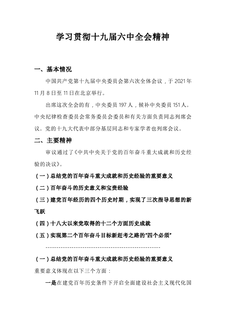學(xué)習(xí)貫徹十九屆六中全會精神