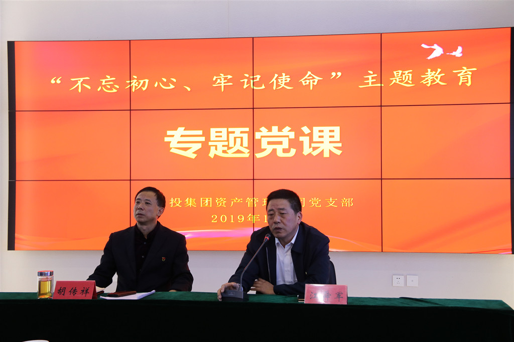 | 為教育引導(dǎo)黨員干部不忘初心,牢記使命,擔(dān)當(dāng)作為,開(kāi)拓創(chuàng)新,奮力譜寫(xiě)金融工作新篇章,10月10日下午,資產(chǎn)管理公司黨支部舉行“不忘初心、牢記使命”主題教育黨支部書(shū)記講黨課活動(dòng),資產(chǎn)管理公司黨支部書(shū)記、董事長(zhǎng)胡傳祥同志講授“初心不改,擔(dān)當(dāng)作為,創(chuàng)造無(wú)愧于時(shí)代的工作業(yè)績(jī)”主題黨課,集團(tuán)黨委第一指導(dǎo)組同志到會(huì)指導(dǎo)。
