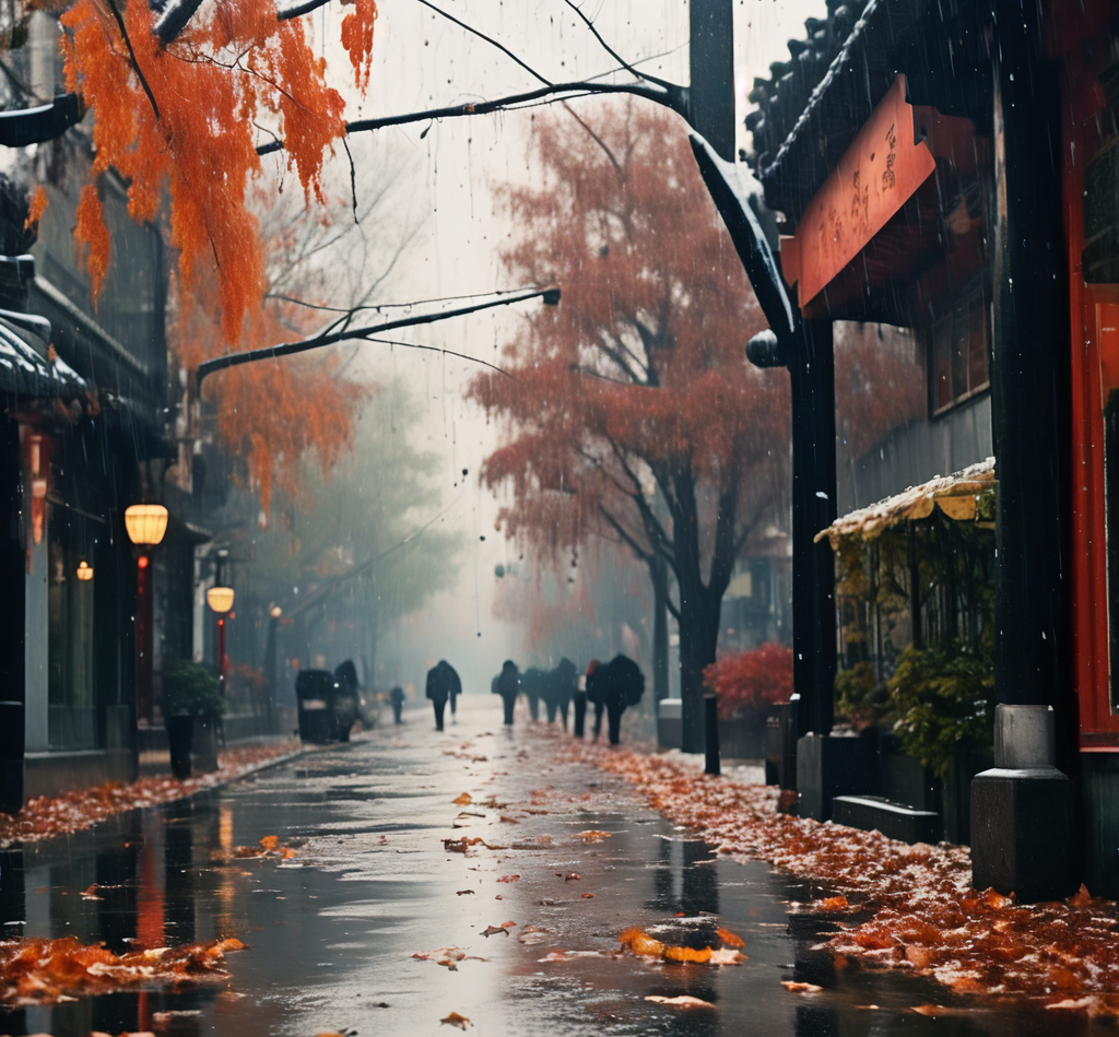 雨滴細密確冰冷而清澈,吹到臉上、手上,冷得刺骨。我連忙把衣服裹得更緊些,但這寒冷似乎已經(jīng)滲透到了骨子里。路上的人們行色匆匆,似乎都想盡快逃離這場雨。