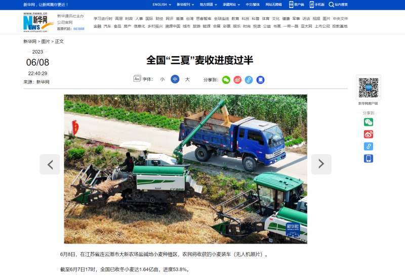 自6月8日麥?zhǔn)展ぷ鲉?dòng)以來(lái),青口投資公司高度重視、精心組織,科學(xué)高效調(diào)動(dòng)全方面因素,全力投入耐鹽堿小麥?zhǔn)崭罟ぷ鳎?/span>開(kāi)創(chuàng)了農(nóng)業(yè)高質(zhì)發(fā)展新局面,受到了中國(guó)政府網(wǎng)、人民網(wǎng)、新華社、新華網(wǎng)、連云港日?qǐng)?bào)、蒼梧晚報(bào)等中央、省市級(jí)主流媒體的廣泛關(guān)注。(青 宣)