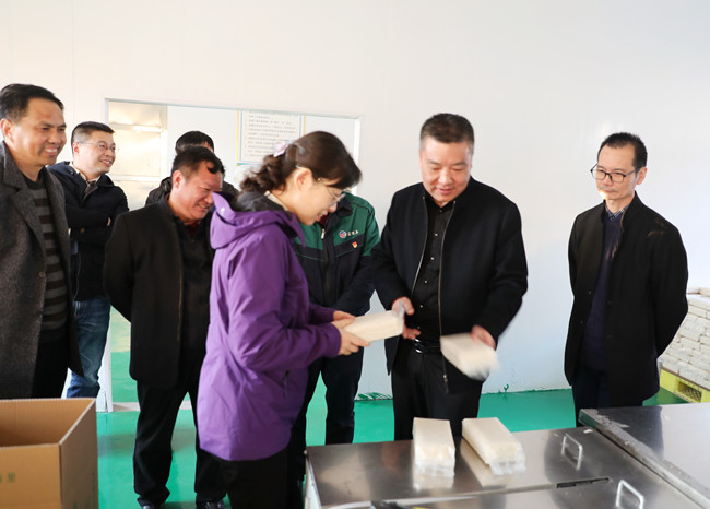 新米上市,線上線下同步火爆銷售,“鹽田玉”大米生產(chǎn)加工車間有條不紊忙碌著,流水線上的工人們,熟練的將大米裝袋、封口、堆碼整齊。青口公司史書記向汪書記一行,詳細介紹大米的生產(chǎn)、銷售、市場行情,并匯報明年新產(chǎn)品開發(fā)和產(chǎn)線延伸思路,汪書記給予充分肯定,并強調(diào)三點:一是做好大米銷售運輸同時,提高防范意識,做好疫情防控工作;二是結合線上線下資源,做好品牌營銷工作;三是深入調(diào)研,提前謀劃,做好新產(chǎn)品開發(fā)工作。