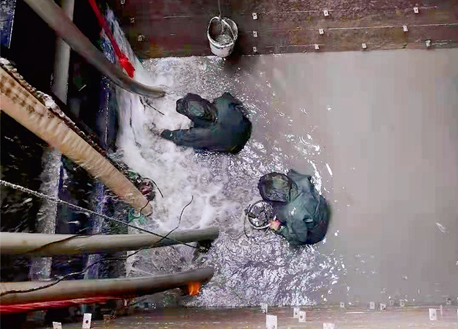 連日來(lái),深度4米的泵池底一批又一批工人冒雨在泥漿中接續(xù)奮戰(zhàn)。