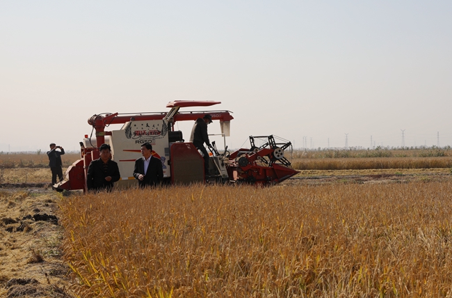 11月4日上午,晴空萬里,在喜慶的鞭炮聲和收割機的轟鳴聲中,公司萬畝水稻正式開鐮,一年一度的收割任務(wù)全面展開。黨委書記、董事長胡傳法、副總經(jīng)理周緒祥到場指導(dǎo)。