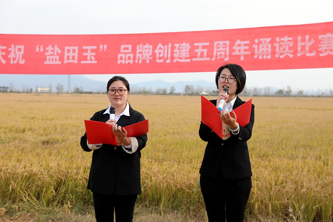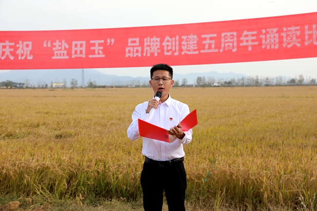 ? ?金秋十月,稻浪播香,又到一年豐收季。為慶祝“鹽田玉”品牌創(chuàng)建五周年,營(yíng)造企業(yè)文化氛圍,展現(xiàn)職工群眾健康向上的精神風(fēng)貌,10月25日下午,投資公司于萬(wàn)畝稻田間舉行慶祝“鹽田玉”品牌創(chuàng)建五周年誦讀比賽。公司黨委委員、副總經(jīng)理周緒祥,各單位黨政工負(fù)責(zé)人、機(jī)關(guān)全體管理人員,大新農(nóng)場(chǎng)條田工,米業(yè)營(yíng)銷中心生產(chǎn)銷售團(tuán)隊(duì)參加活動(dòng)。