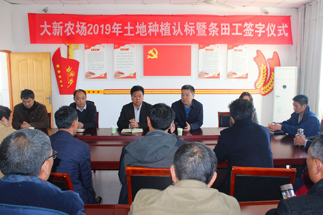 為序時(shí)推進(jìn)農(nóng)業(yè)生產(chǎn),確保各項(xiàng)生產(chǎn)工作快速啟動(dòng), 3月22日上午, 公司舉行大新農(nóng)場(chǎng) 2019年土地種植認(rèn)標(biāo)暨條田工簽字儀式,公司總經(jīng)理史祥平、副總經(jīng)理周緒祥出席。