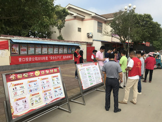 6月14日上午,青口投資公司舉行以“生命至上,安全發(fā)展”為主題的“安全生產(chǎn)月”宣傳咨詢?nèi)栈顒?。張貼安全月主題掛圖12幅,展板5塊,發(fā)放《安全月主題》、《急救自救互救知識》、《用電安全十不準》、《電動車安全知識普及》等宣傳單200余張。活動現(xiàn)場,公司將“鹽田玉”大米作為小禮品向職工群眾發(fā)放。通過宣傳咨詢?nèi)栈顒右蕴岣咂髽I(yè)安全生產(chǎn)意識和廣大職工群眾安全素質(zhì),有利于宣傳安全文化、安全生產(chǎn)管理制度、事故預(yù)防與處理及安全技能知識,更有利于宣傳企業(yè)在開展安全建設(shè)與管理過程中形成的優(yōu)秀成果,為企業(yè)營造潤物無聲的安全文化意境,讓職工群眾深受教育、感悟常新。 (安技部)