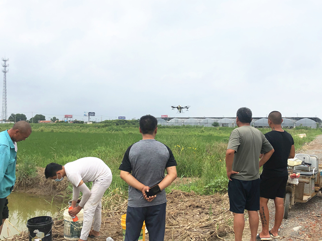 據(jù)生態(tài)種養(yǎng)中心嚴(yán)鑫介紹,現(xiàn)在正值多雨高濕天氣,水稻易發(fā)稻瘟病、稿飛虱、稻縱卷葉螟等病蟲害,為了做好水稻的病蟲害高效防治及除草工作,需要用無人機(jī)在稻地進(jìn)行打藥作業(yè)。