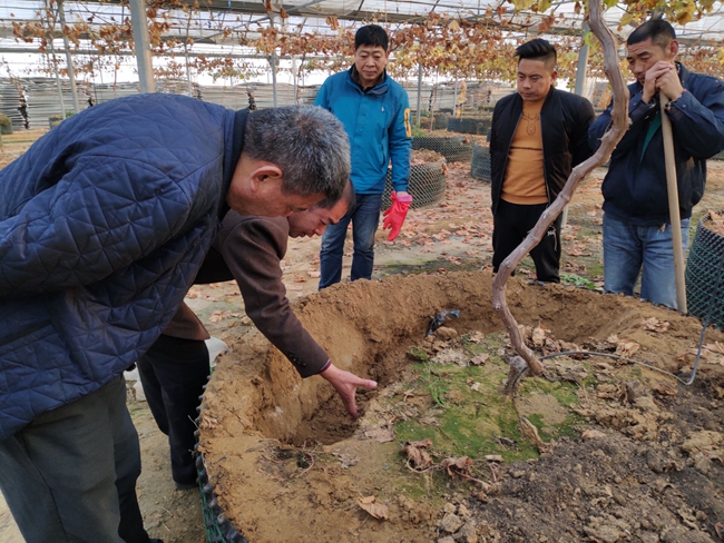 12月5日下午,種養(yǎng)中心邀請贛榆沙河葡萄種植專家劉大鵬,就有關(guān)限根葡萄種植技術(shù)的問題到大棚現(xiàn)場指導(dǎo)。專家介紹了目前葡萄產(chǎn)業(yè)的發(fā)展現(xiàn)狀,并仔細(xì)查看種植條件,結(jié)合種養(yǎng)中心實(shí)際,對葡萄品種選擇、提高葡萄品質(zhì)、合理用藥、施肥、以及防治葡萄病蟲害等方面進(jìn)行了講解。為今后葡萄的種植,起到了積極的促進(jìn)作用。(莫宗剛)
